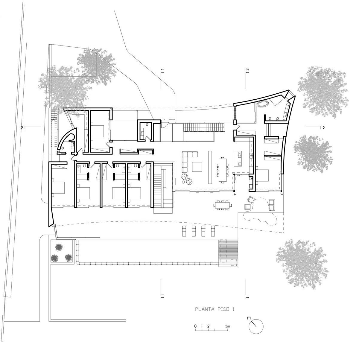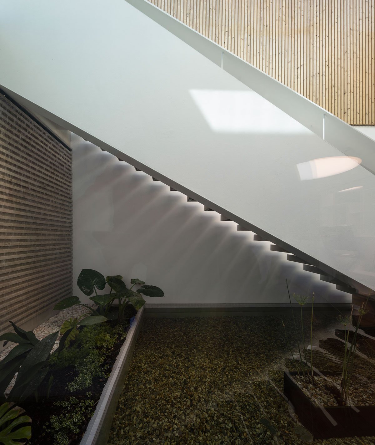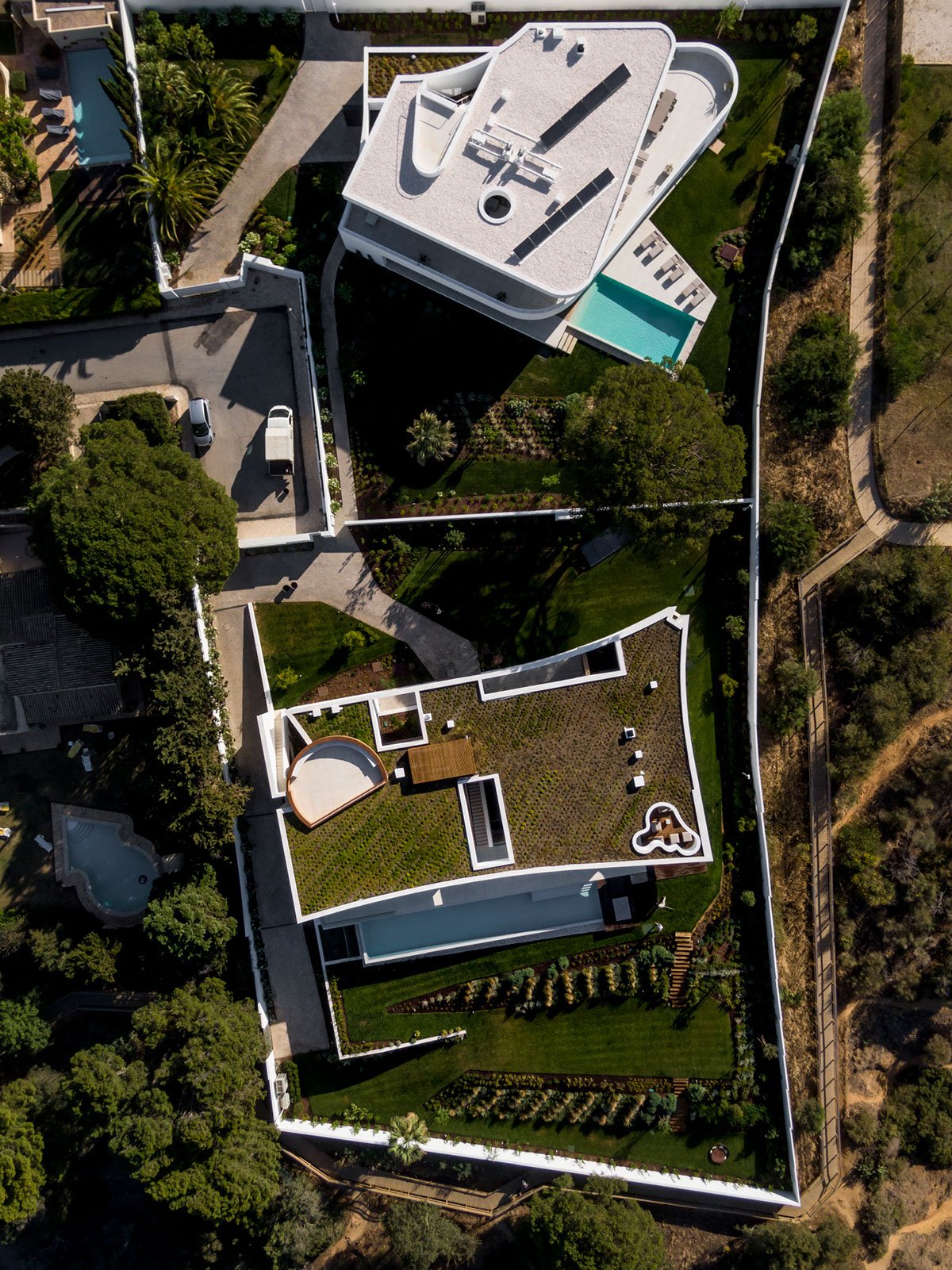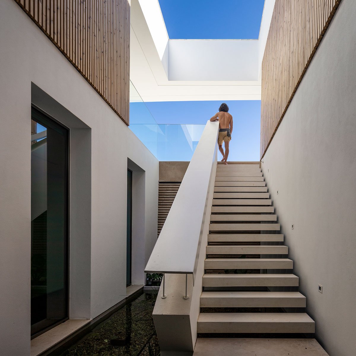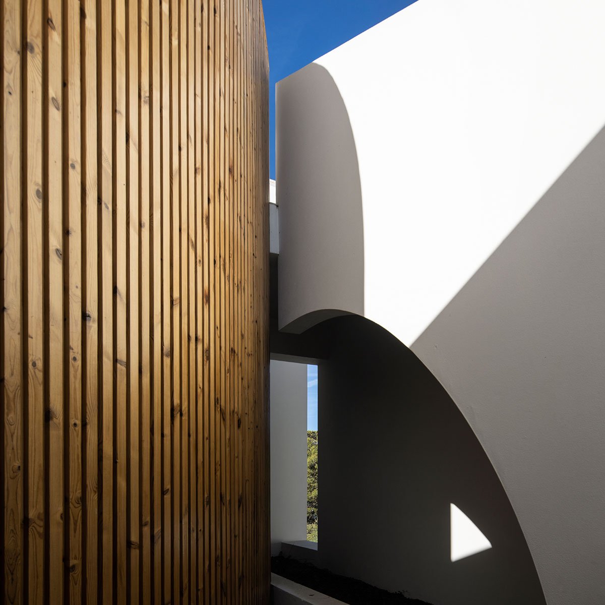 The voids in the buildings, with special attention for the wavy iconographic void and the use of wood are a tribute to one of the greatest architects of the XX century, Alvar Aalto and the Nordic design, where the client comes from. It is a quest for a symbiosis between the crudest architectural culture of the South and the elegance of Northern European design, so that the house is both the origin and the destination.