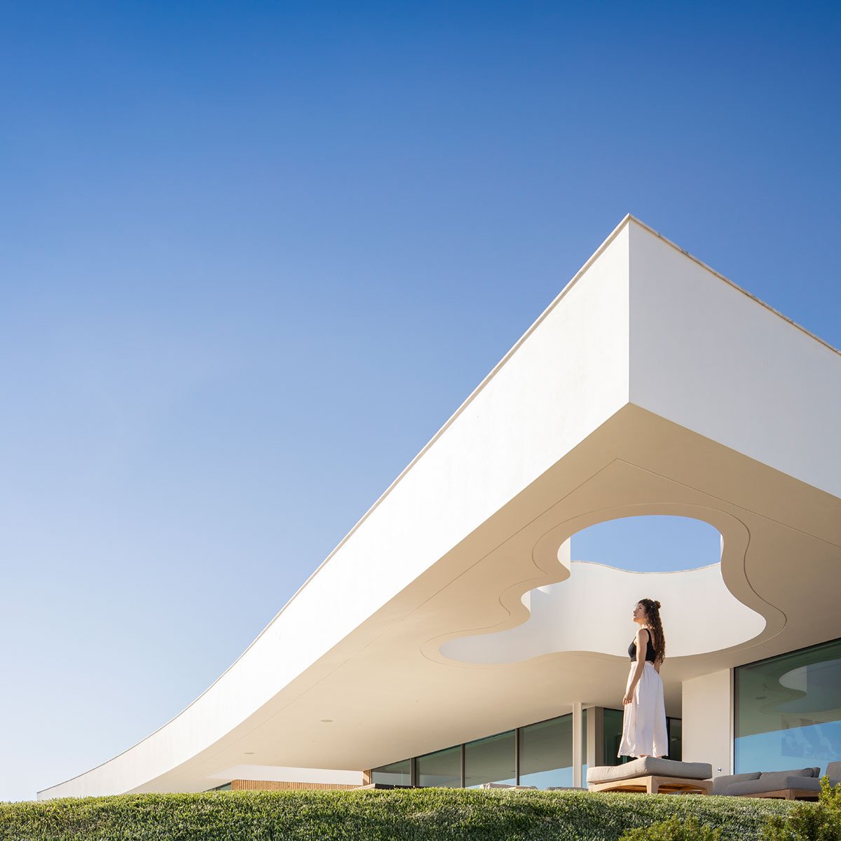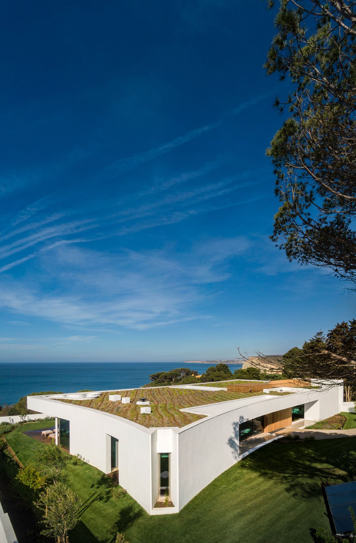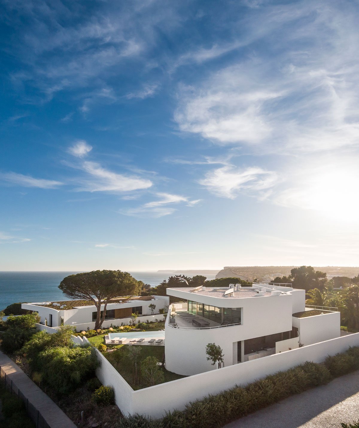 Excerpt: Lux Mare by Mário Martins Atelier, two new residences, represent individual parts of a set, complementing each other through curved shapes. The houses blend into the landscape, with horizontal glazed frontages allowing for different views of the surrounding greenery, steep cliffs, sea, and sky. The simple lines, uniformity, and balance of resources and design serve as benchmarks in responsible architecture.