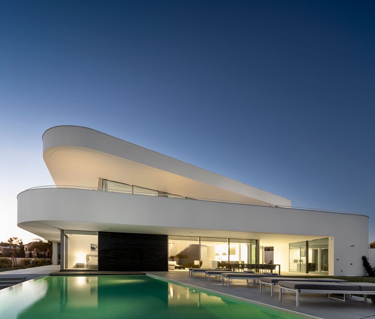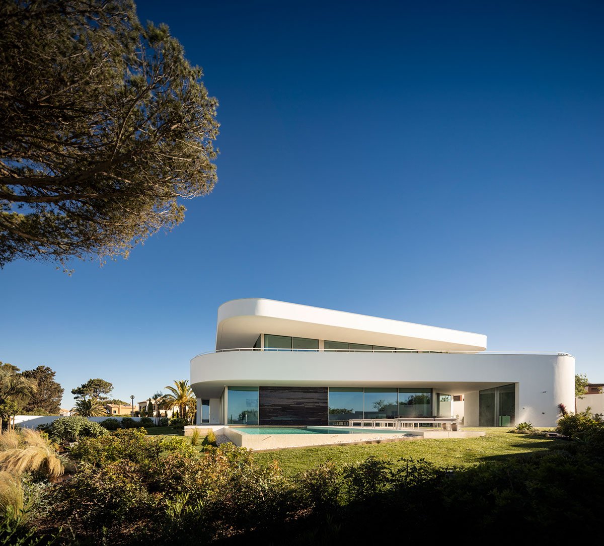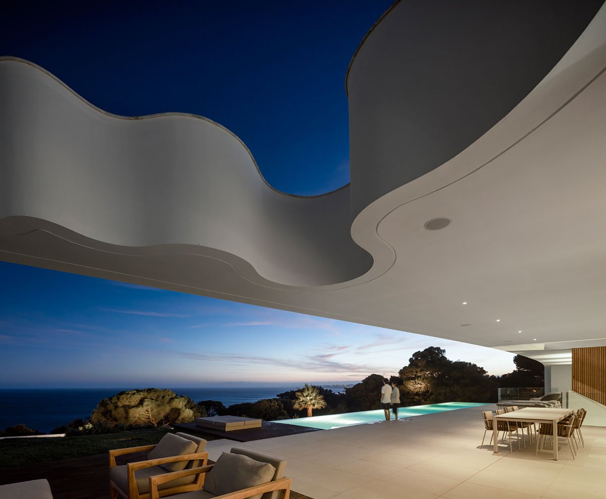 Excerpt: Lux Mare by Mário Martins Atelier, two new residences, represent individual parts of a set, complementing each other through curved shapes. The houses blend into the landscape, with horizontal glazed frontages allowing for different views of the surrounding greenery, steep cliffs, sea, and sky. The simple lines, uniformity, and balance of resources and design serve as benchmarks in responsible architecture.