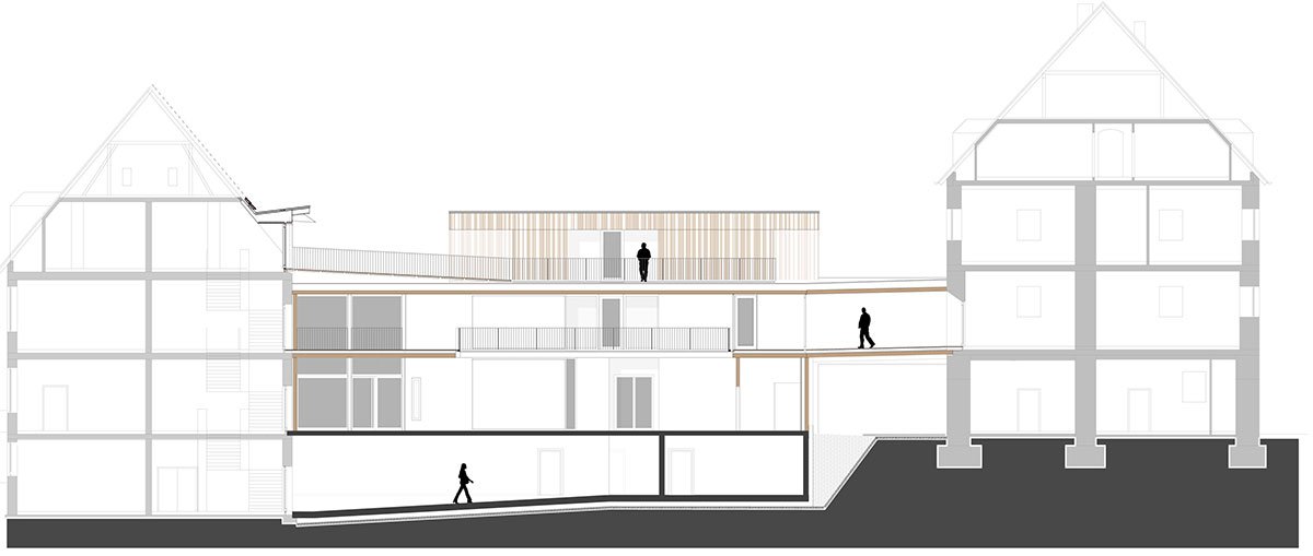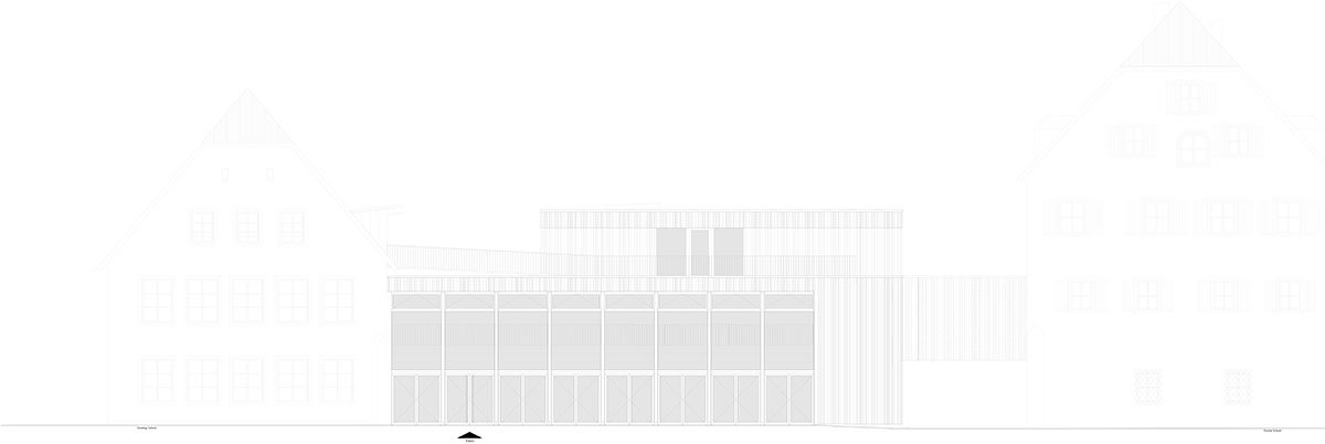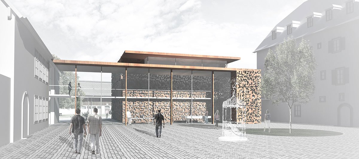 Leisure areas for the students are housed in an orangery with the greatest possible focus on the common good, facing the courtyard. This also serves as an entrance area for the school, as a link to the northern school area and as a weather-protected area for communication, exhibitions, presentations, parties, games, etc. Instead of expanding the attic of the existing school, two classrooms were built on the ground floor of the planned new building.