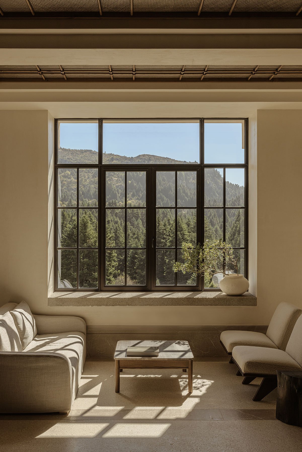In order to revive the property, redefining the very same concepts of hospitality, wellness and retreat that made it ideal in its first life cycle, the designers had to look through a contemporary prism that would make Manna a modern sanctuary and a destination in itself. The secluded location, the unspoilt natural surroundings combined with the emblematic architecture of a lost era, inspired them to translate this vision into an optimistic and respectful continuity of its long history.