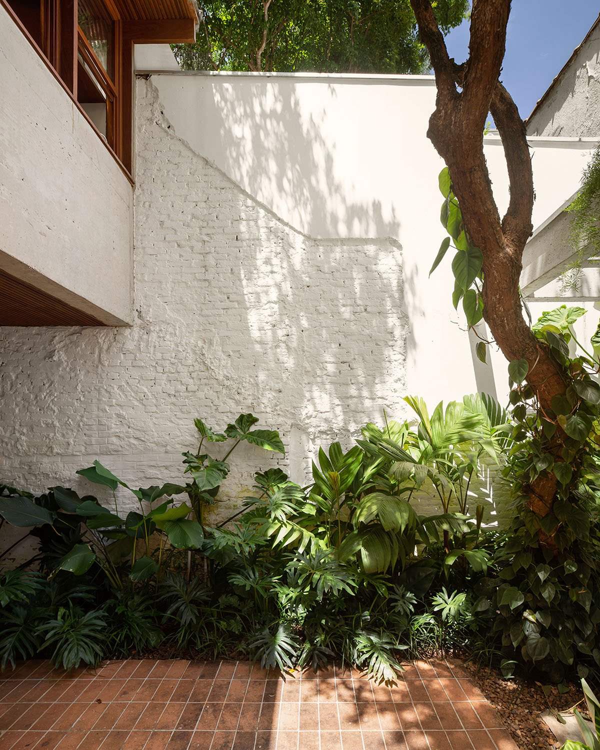 The expansion of the external space on this floor was an initial premise of the project so that even on a small plot, the house would provide a garden space, a rare condition in a metropolis like São Paulo. On the upper floor, which is more intimate, only occasional actions were taken to redesign the two bedrooms and bathroom finishes.