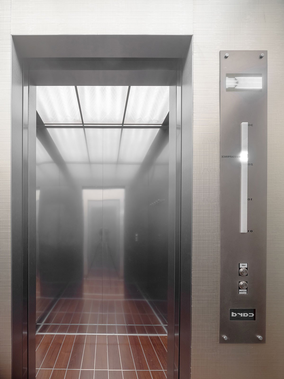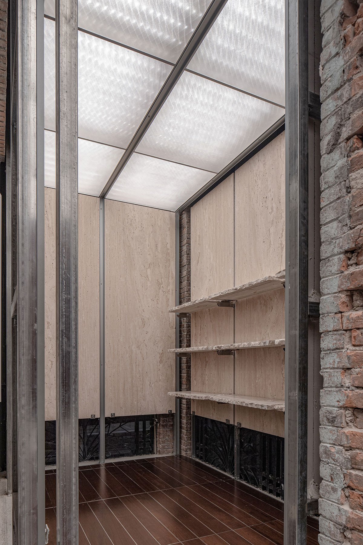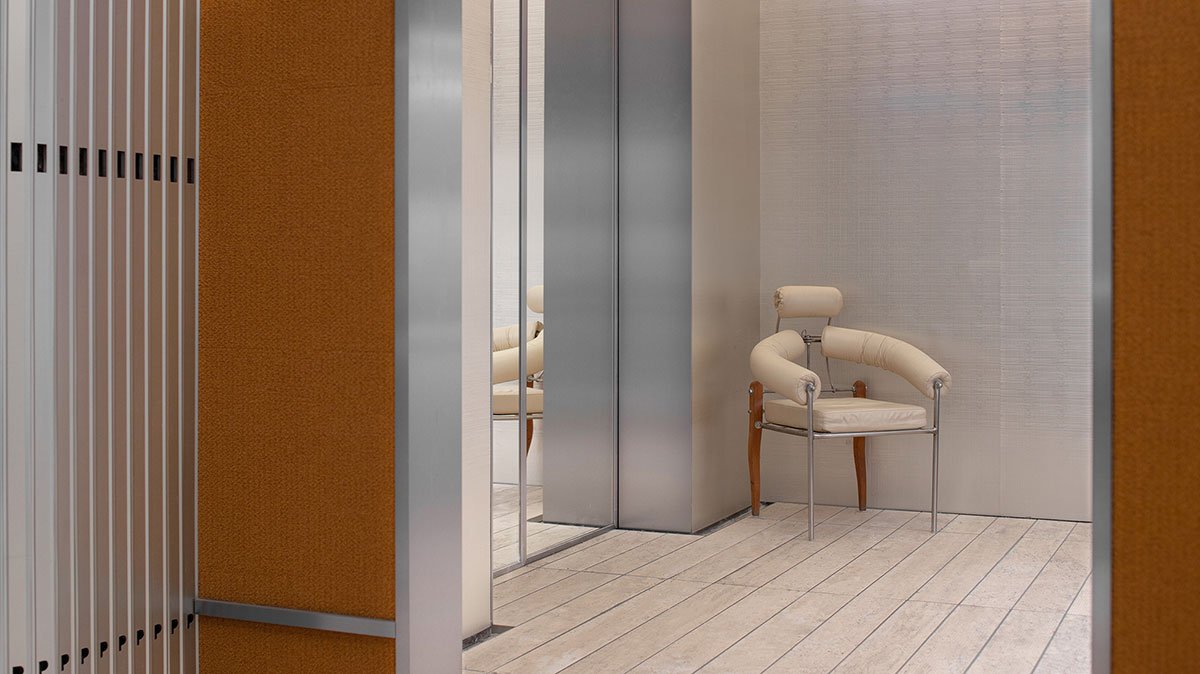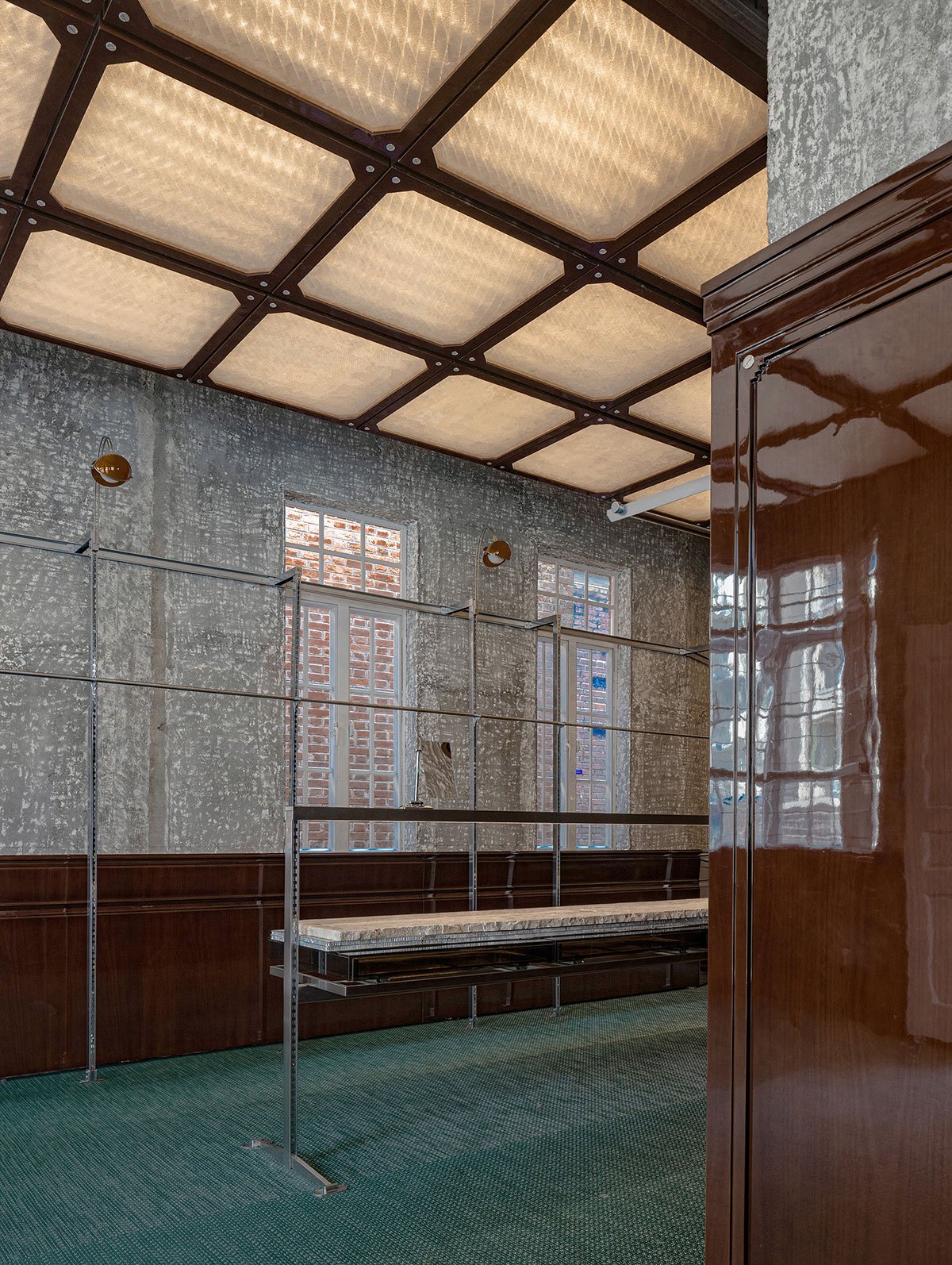 The interplay between the future and the present within the space and the contrasts it creates bring a unique experience to the visitors. As the interrupted timeline extends deeper into the space, vagueness and contrast develop in the spatial functions and the expression of substances. The fitting room and the accessory room are subtly envisioned as an “elevator” and “elevator hall”.