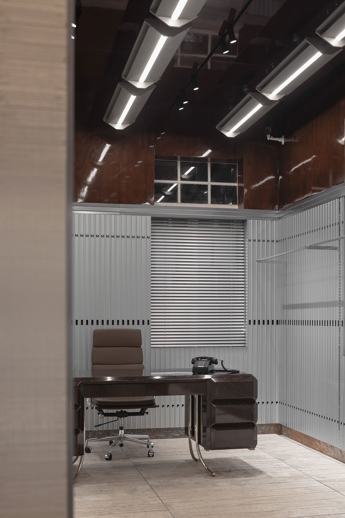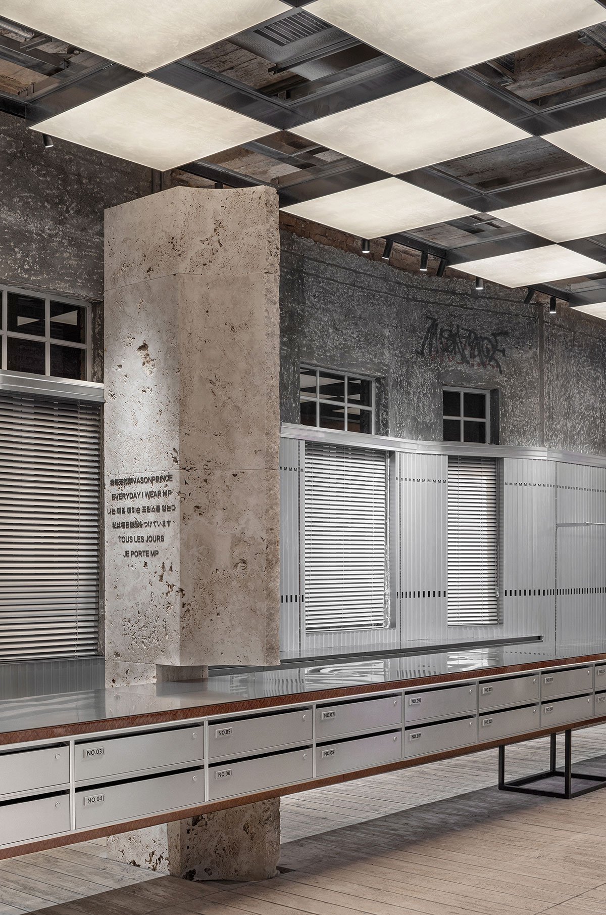 Excerpt: MASONPRINCE, an office interior by TOMO Design, brings new experiences by creating a narrative with an interrupted timeline, incorporating a design language that “transcends the present“, and building a work scenario of “MP Studio” in the space. With an avant-garde perspective and via a unique medium, the design creates a dialogue between the past and the future. It connects the brand’s classless concept with space, brings out unbounded dynamics and showcases a multi-dimensional time-space realm of the MASONPRINCE universe.