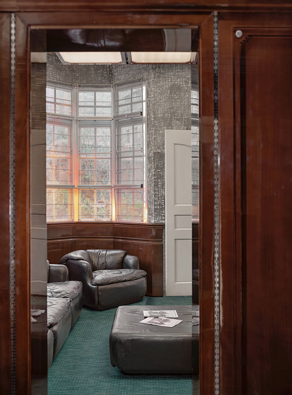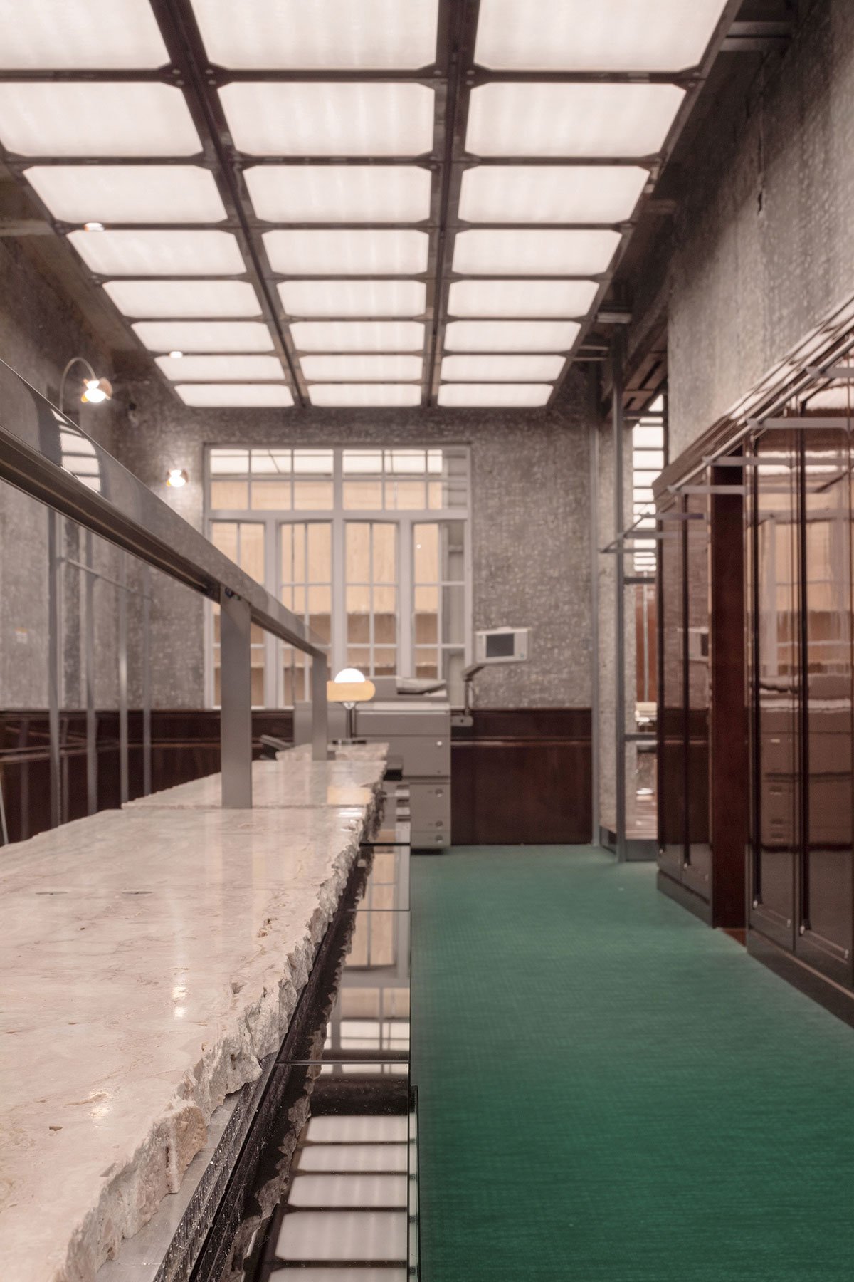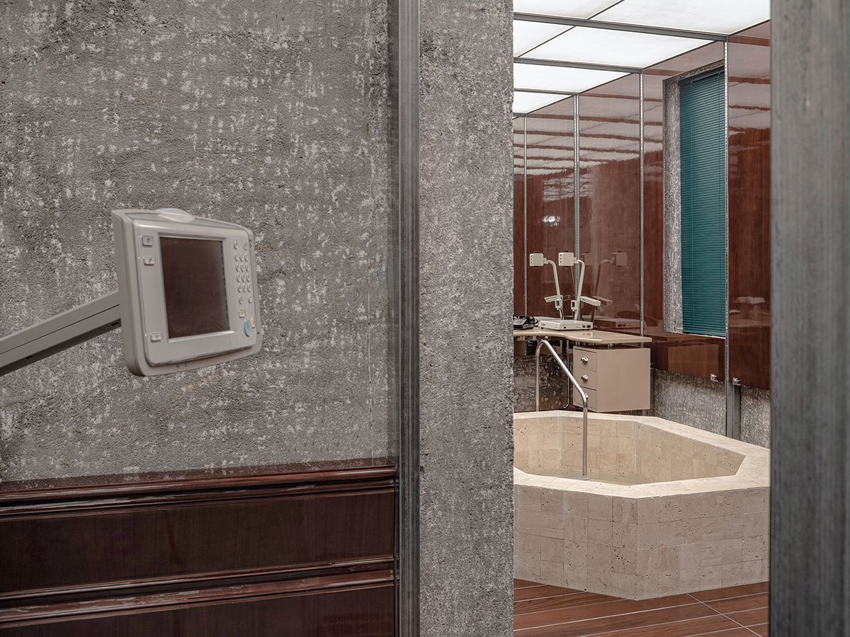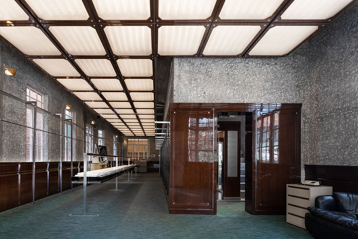 The bathroom is designed as “filing cabinets” in the time archive room.