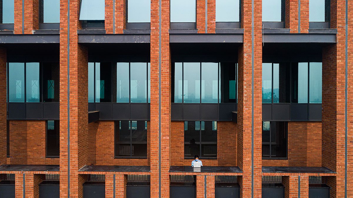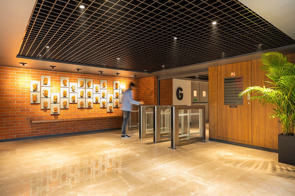 Distinguishing itself from its neighbours while remaining firmly embedded in its industrial context, the design vocabulary of Max House extends the narrative set by the old Modi Flour Mills in the vicinity and adapts it for a contemporary workspace. The tower’s façade references the Flour Mills building through its distinctive bands of alternating brick and glass, punctuated by spandrel panels, deep-set balconies and community terraces. While the ground floor is primarily allocated for the podium parking spaces, the first floor features extended terraces, doubling as an elevated park for the users.