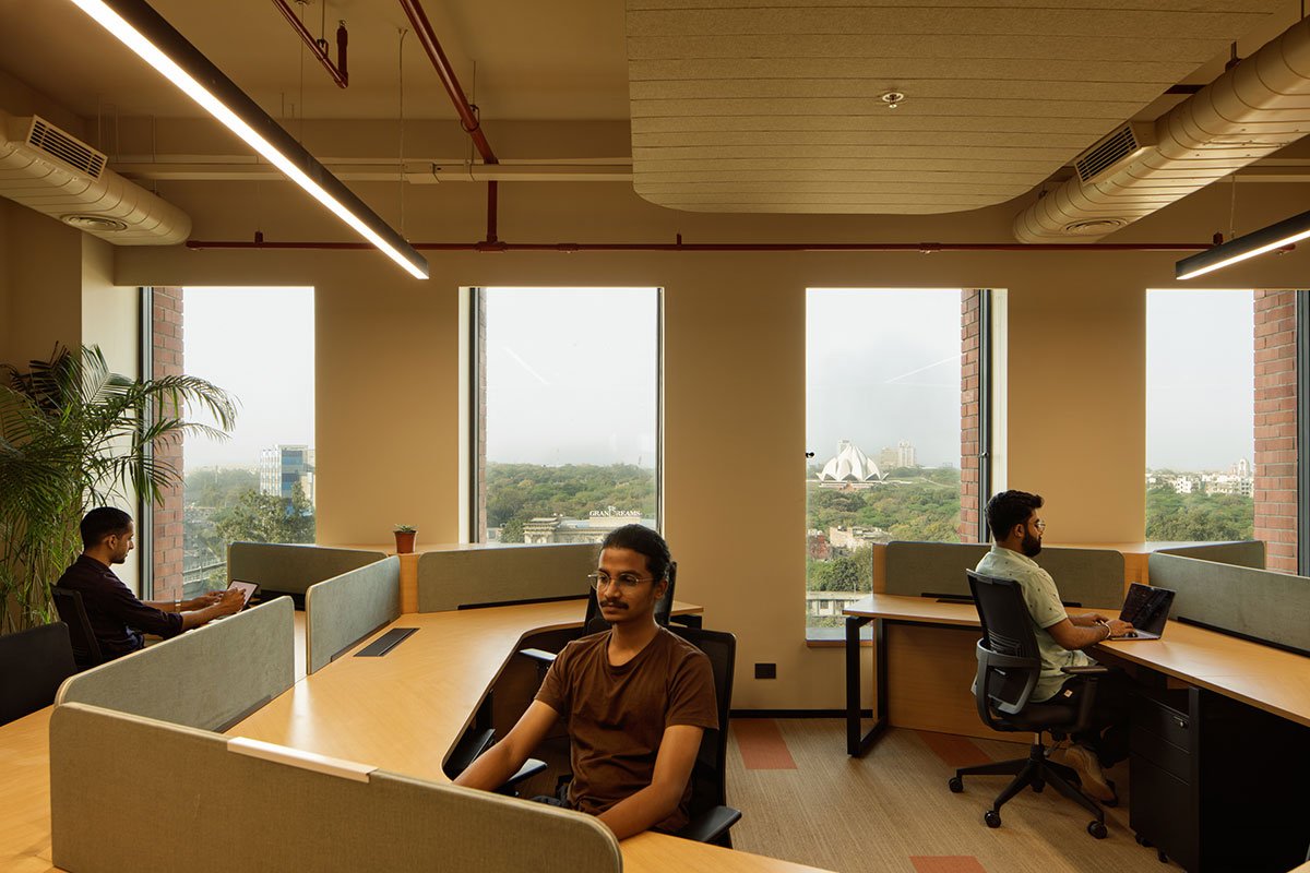 The resultant intervention also optimizes vistas — while the reception lobby offers occupants views of lush vegetation flanking the building, the terrace level from the first floor and onwards afford virtually unimpeded views of the Baha’i House of Worship, and the skyline beyond. Moreover, the podium has so been configured, along the building’s northwest, that its height is roughly the same as that of the adjacent railway colony, thereby maximizing views along this part of the building as well.