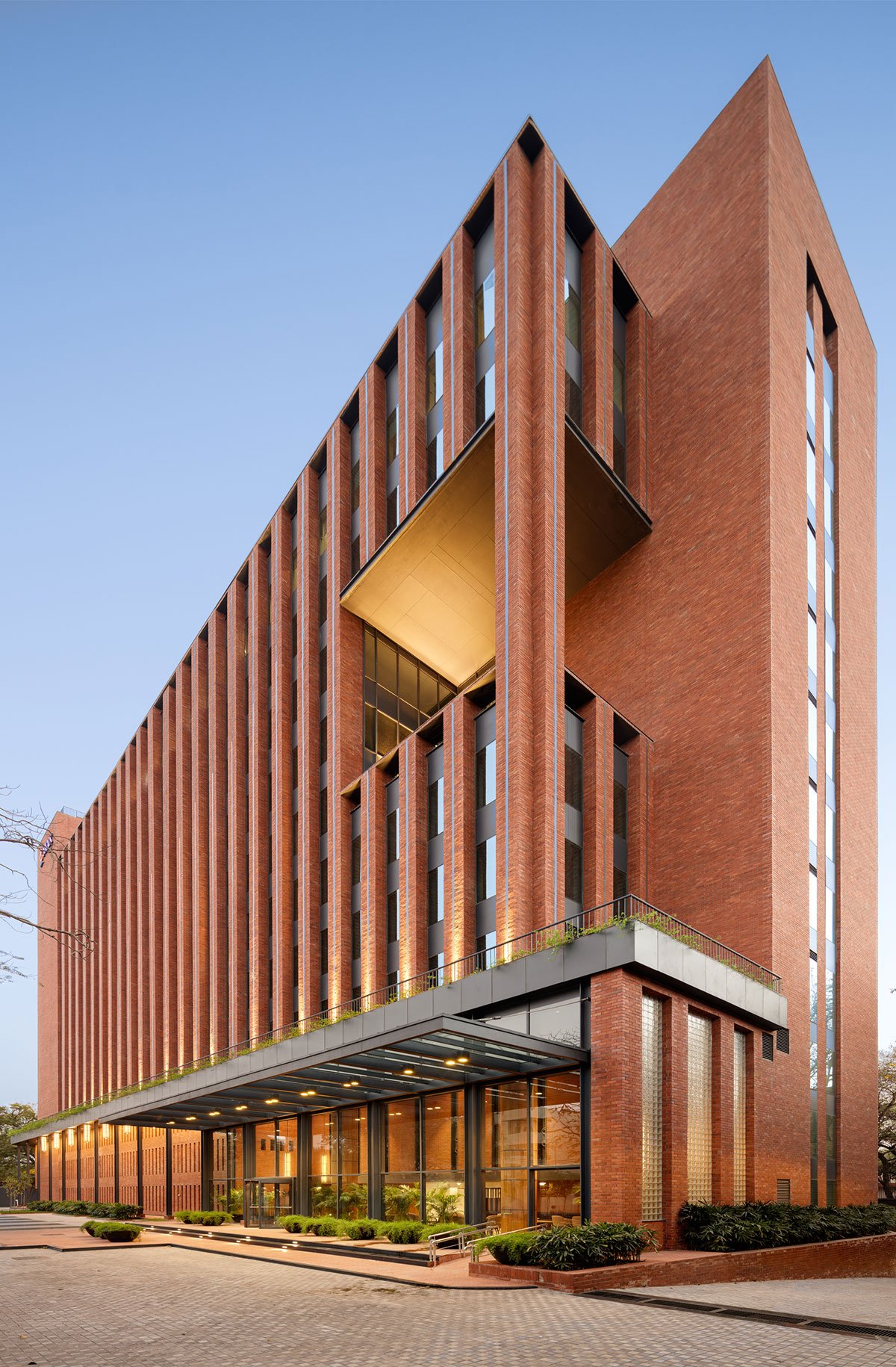 Excerpt: Max House, designed by Studio Lotus, is a corporate campus developed by Max Estates, the premium real estate arm of the Max Group of Companies. The design comprises two multi-tenant buildings placed within a verdant campus—where towers are designed to accommodate a myriad of workspaces and an existing building to be adapted into a community hub that integrates the ground plane of the towers. The design scheme extends the expression of exposed brickwork into the interiors, injecting spaces with a natural, ‘handcrafted’ appeal. The project attempts to create an alternative benchmark for commercial architecture in the Indian context.