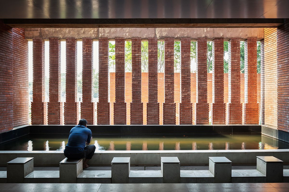 The Shaan provides additional space to accommodate large numbers of devotees during larger gatherings such as the Jummah prayer on Fridays, Eid prayers and other special occasions. Any other time, it acts as a social hub for the community. Here Shaan has been introduced as the “THRESHOLD SPACE” which is connecting and dividing the terrestrial noisy road on the south and silent, celestial graveyard on the north. People entering the Shaan connects the view of the graveyard framed by a bridge of glass. The other important aspect of the mosque is its use of brick. For many thousands of years, the Bengal civilization is significant for wonderful architecture by bricks. So, the use of the brick along with traditional spatial typology is an effort to create nothing but a MISSING LINK.