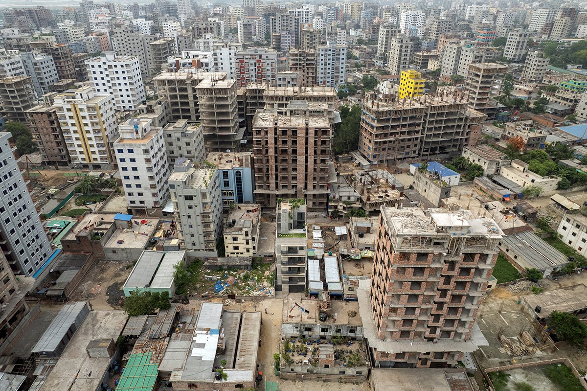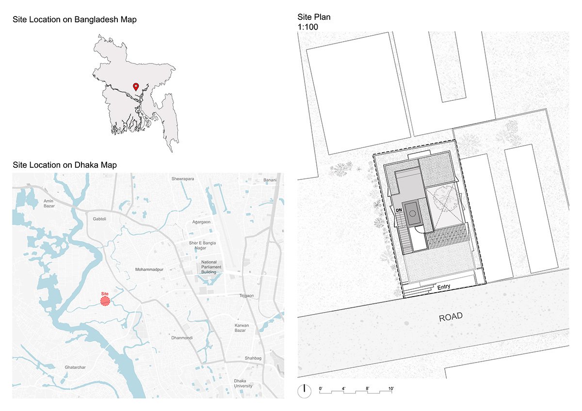 The client, Mohammad Ashraf Bhuiyan, initially sought an apartment but was priced out by Dhaka’s rapidly escalating housing market. His only alternative was a small plot on the city’s edge. Typical residential development in Dhaka prioritizes maximizing Floor Area Ratio, producing vertical buildings with minimal setbacks and compromised access to daylight, ventilation and open space. Rooted in Bangladeshi living traditions and mindful of his family’s future, Mr. Bhuiyan turned to the architects to imagine a different possibility.