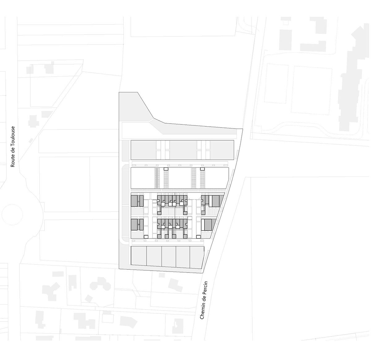 [Text as submitted by architect] The project is part of the overall development plan for sector 1 of the “Laubis” joint development zone. This was the subject of a “Europan” competition, won by the AR357 urban planning team, and is located on a plot of land on the outskirts of Seilh, not far from the Airbus site and the MEETT, Toulouse Exhibition and Convention Centre.