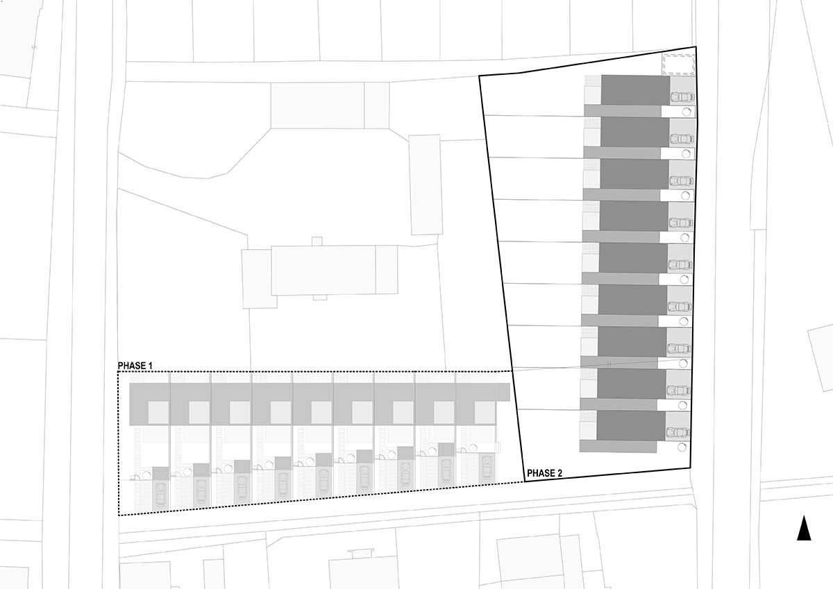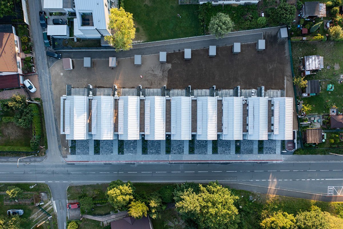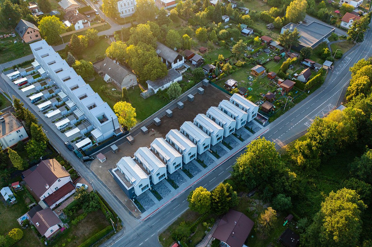 Nine terraced houses along Radvanická Street complement the development of terraced houses on Chleborádova Street from Phase I. The layout of the houses is 6+kk family houses with a garage and storage.