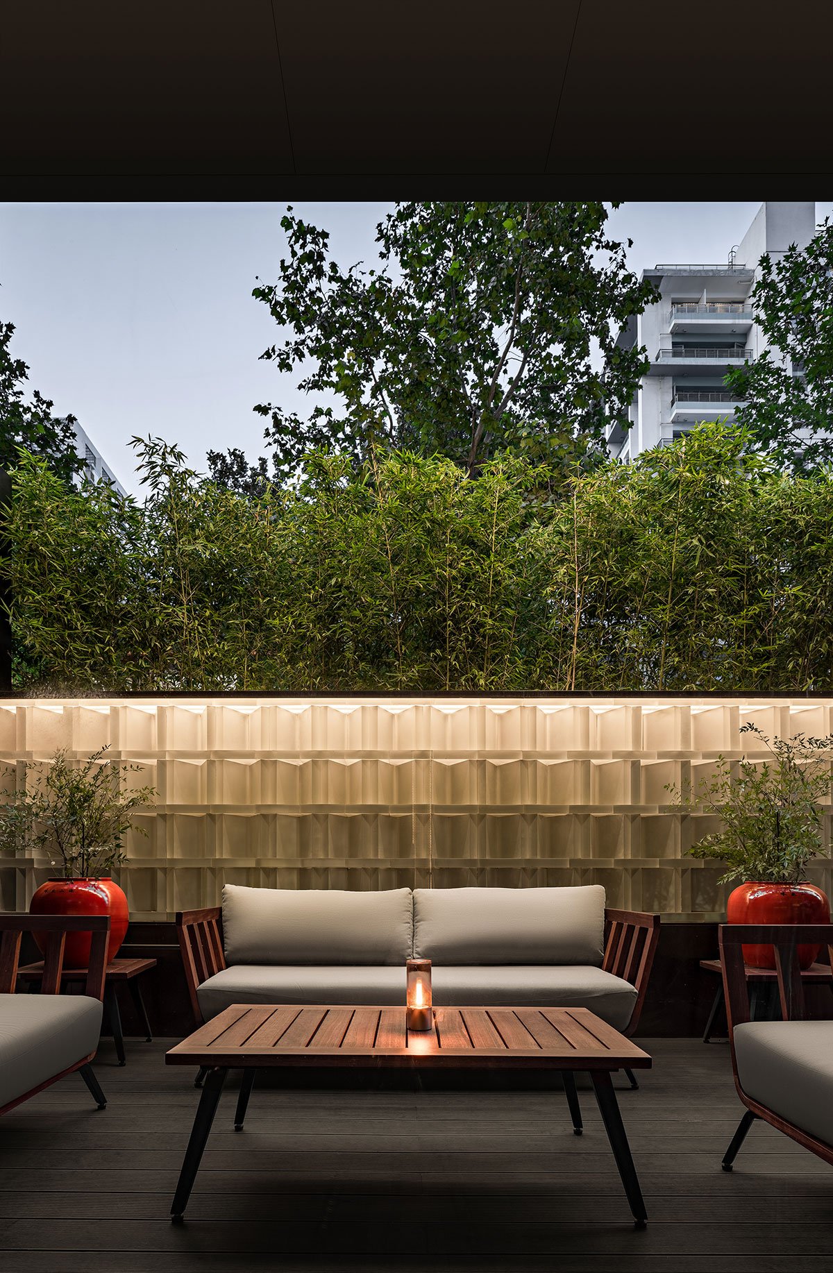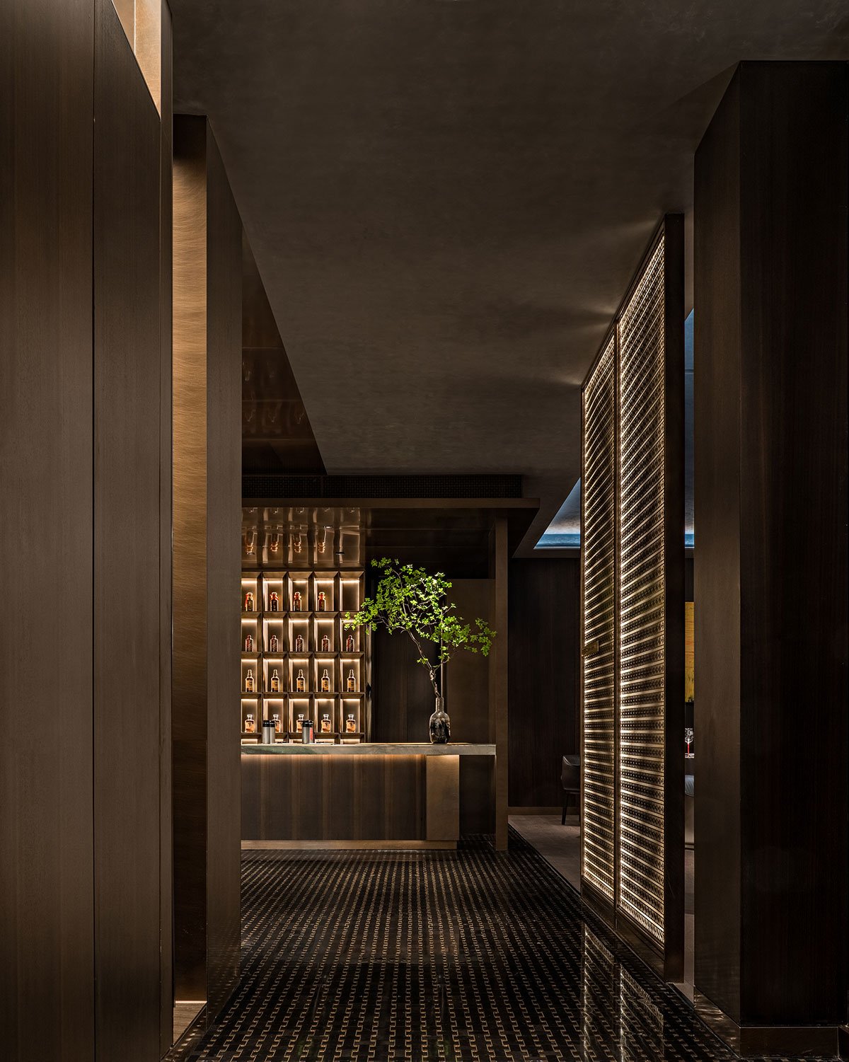 The oriental space aesthetic pursues craft design that integrates artefacts with nature and traditional culture. Although the overall space is dominated by a dark style, it is not dull, which comes from the innovation in the structure of the relationship between space and wall. The floor-to-ceiling windows are designed to provide natural light for the interior, and the frequent use of straight lines builds the three-dimensional texture of the space.