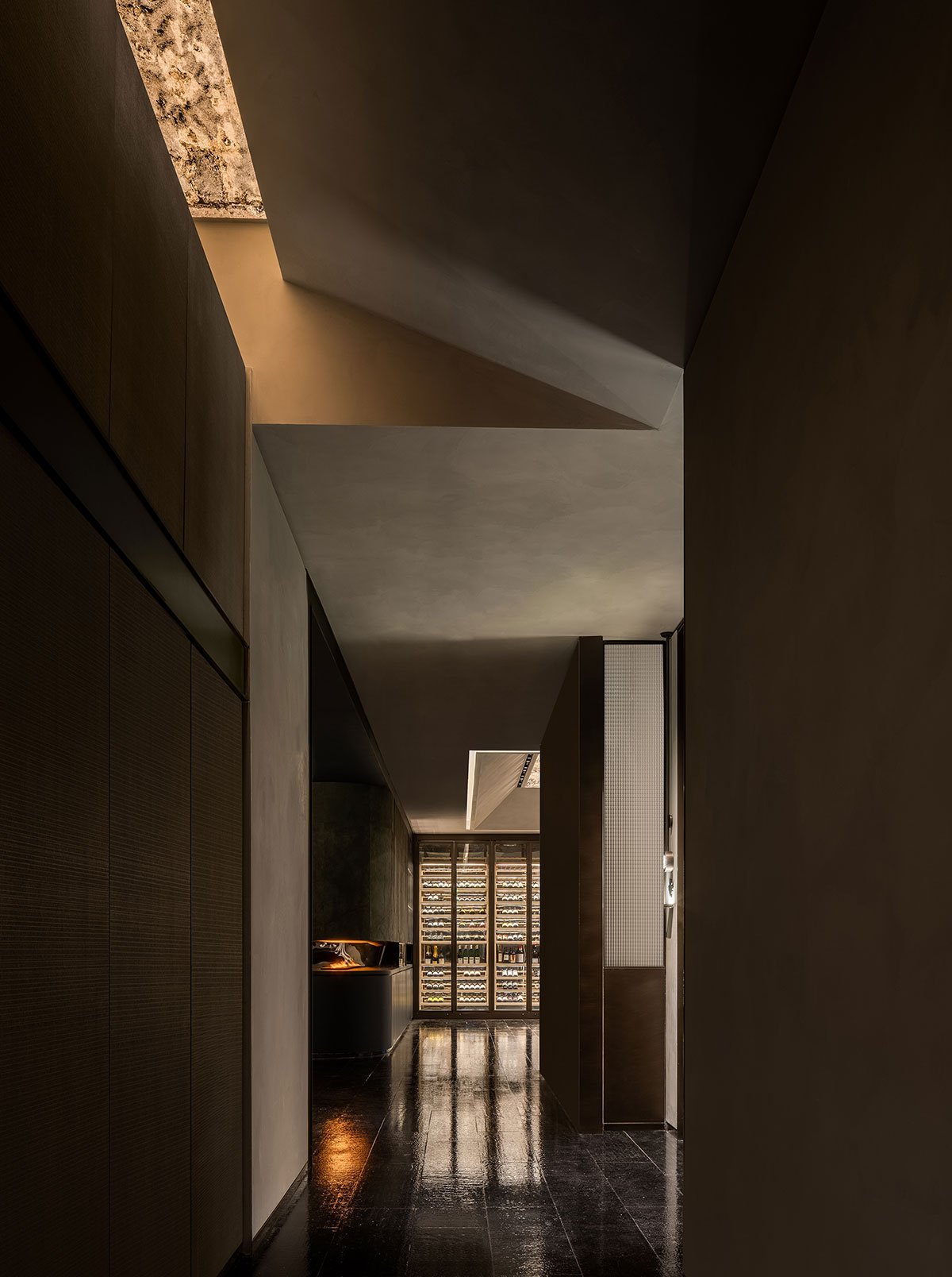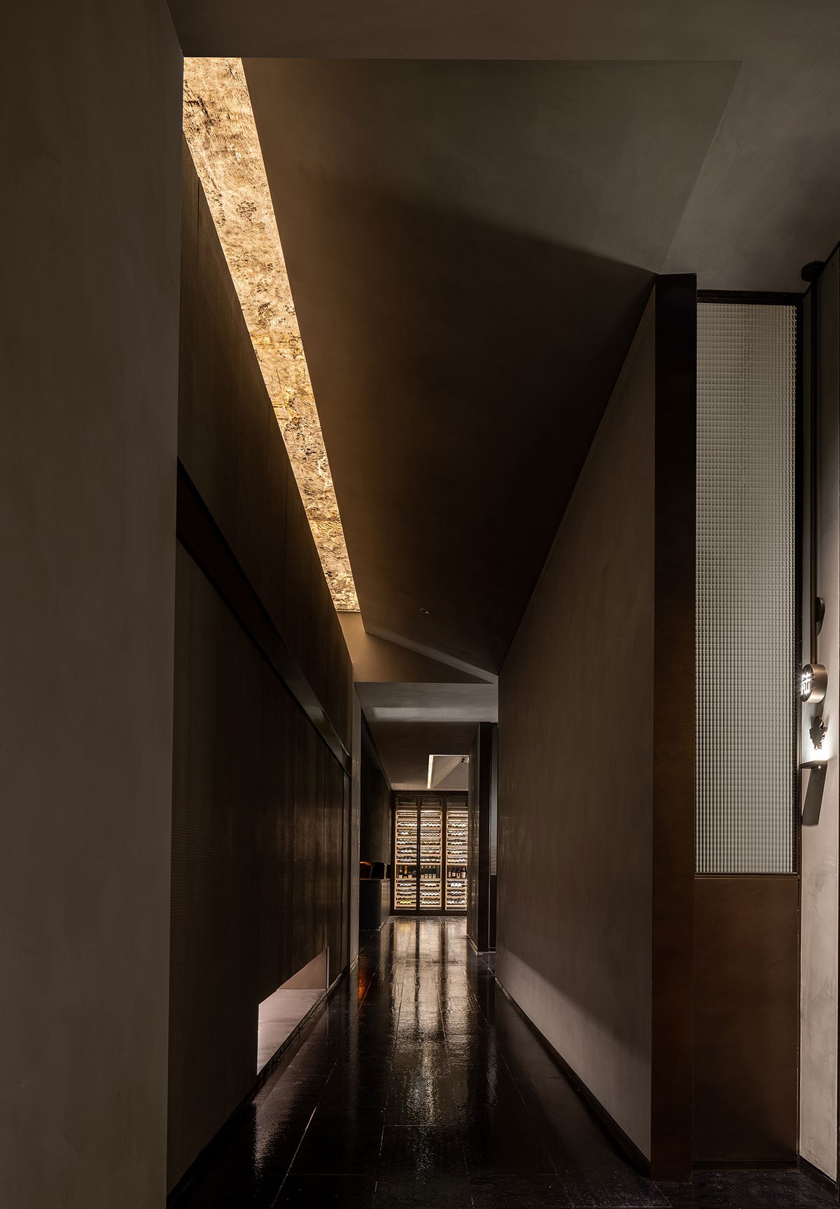 The interior space design follows the length and depth of the original structure, placing private dining rooms with stronger privacy at both ends of the space. The lounge area and kitchen are positioned together in the center. A long corridor, like a vine, connects different functional scenes, allowing each area to be independent yet interconnected.
