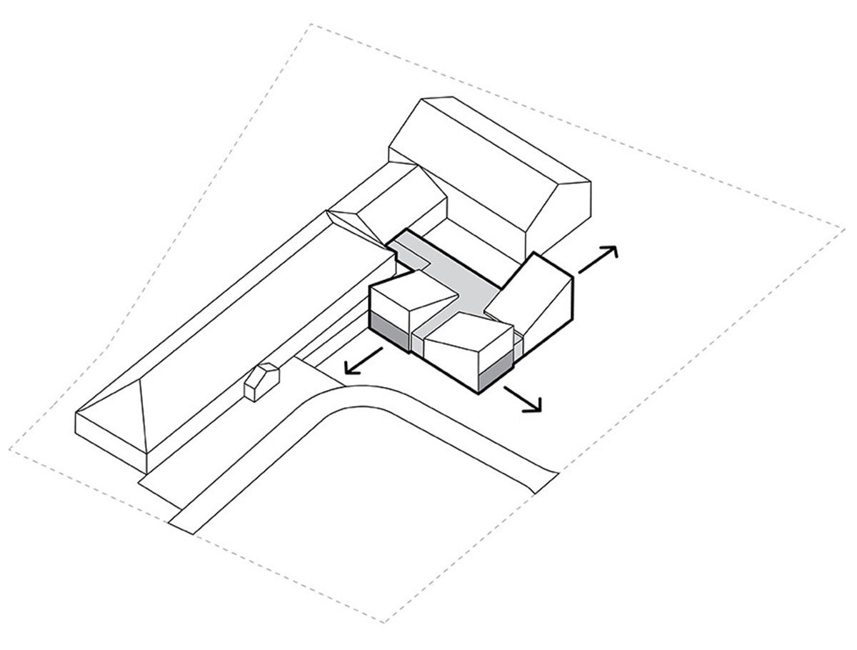 The whole idea of the building is based on forming architecture as a backdrop for preschool events while continuing to form continuation of the existing architecture. Such an effect was obtained thanks to the tectonic transposition of the solid a historic building and shaping a form with a modern expression on its basis. Building designed to integrate with the natural surroundings.
