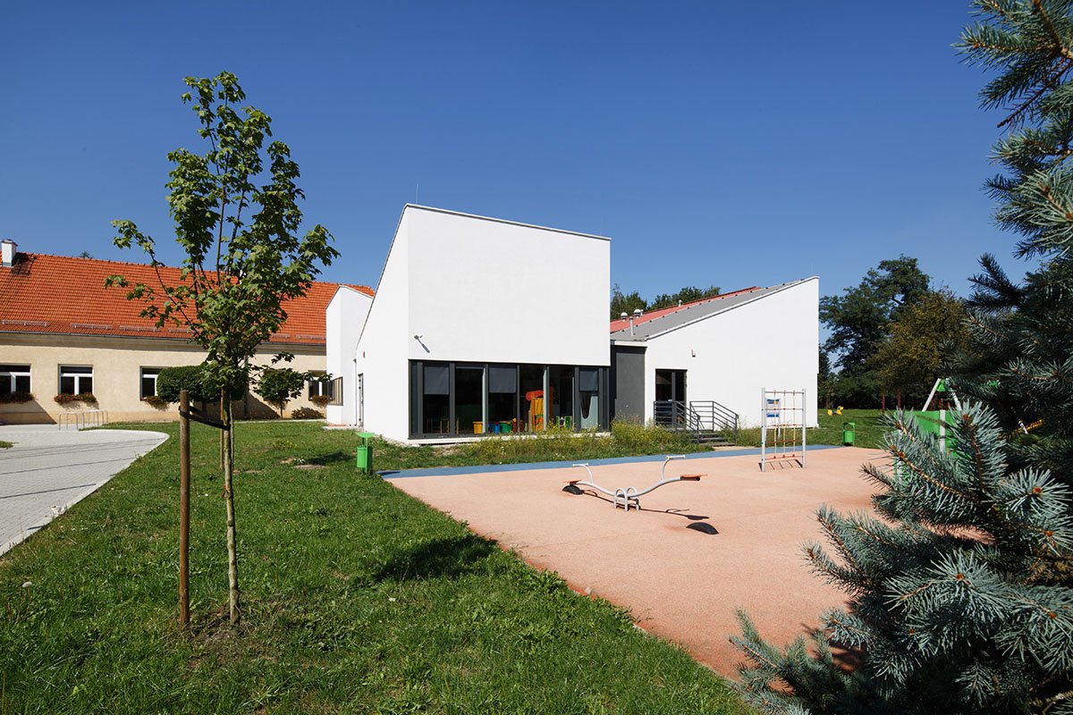 Kindergarten rooms directly they open onto kindergarten garden swallowing for a seamless direct connection between the interior with garden. The facility was designed in a functional layout centered around internal integration hall for children. It provides in the moments between lessons interaction between young users.