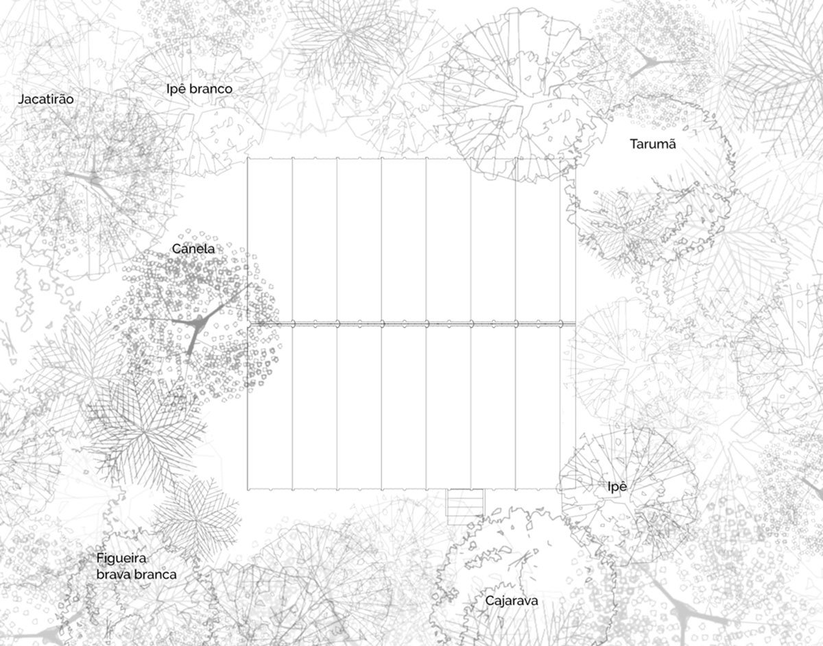 When we thought about the landscape design the statement was the complete reforestation with endemic plants, which we consider is a priority in Brazil and worldwide. As well, conducting local plants’ growth around the house, it proposes a state of immersion of the house and the humans into the wild.