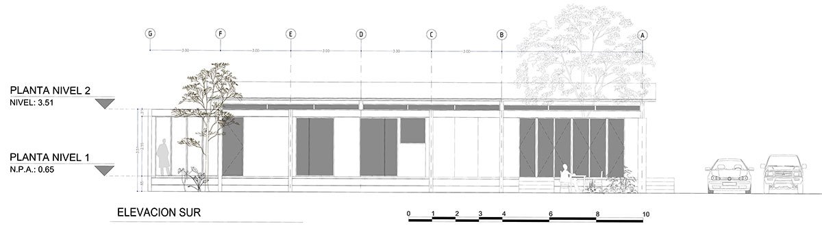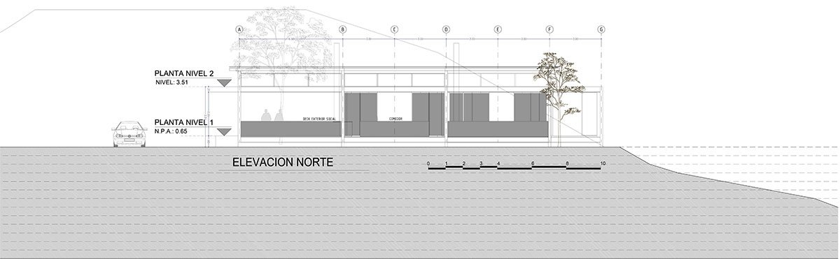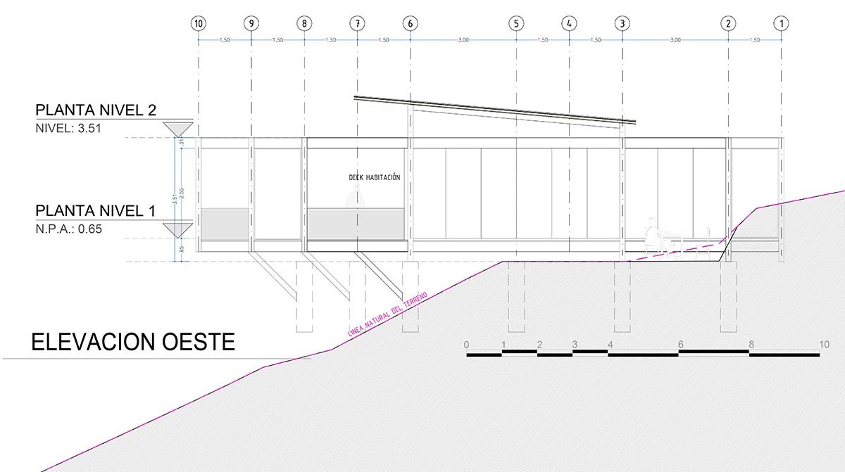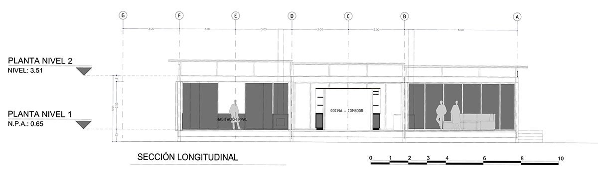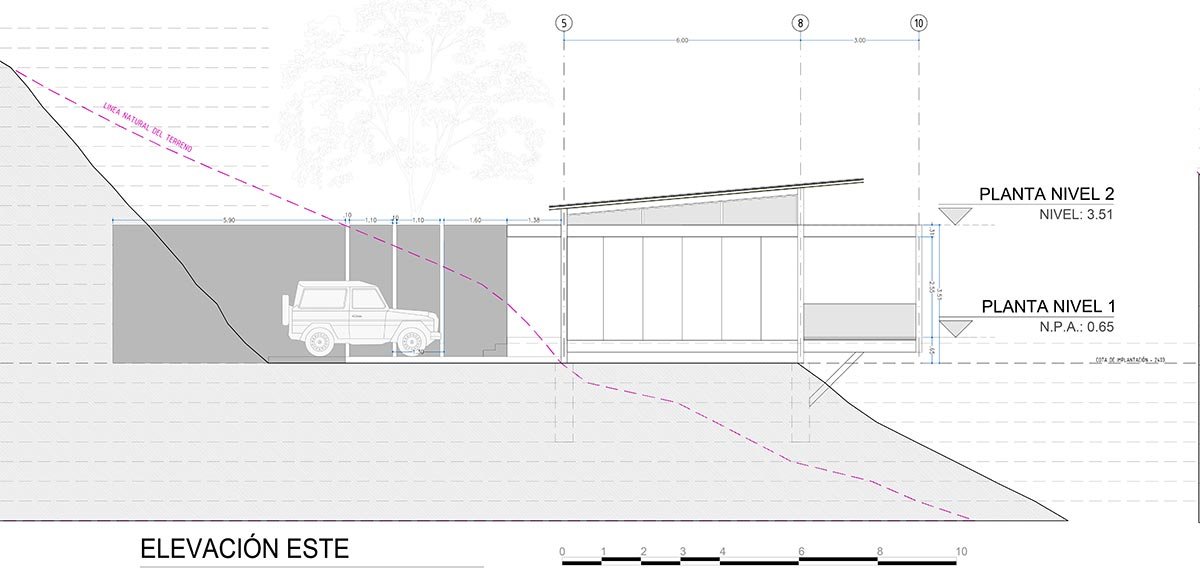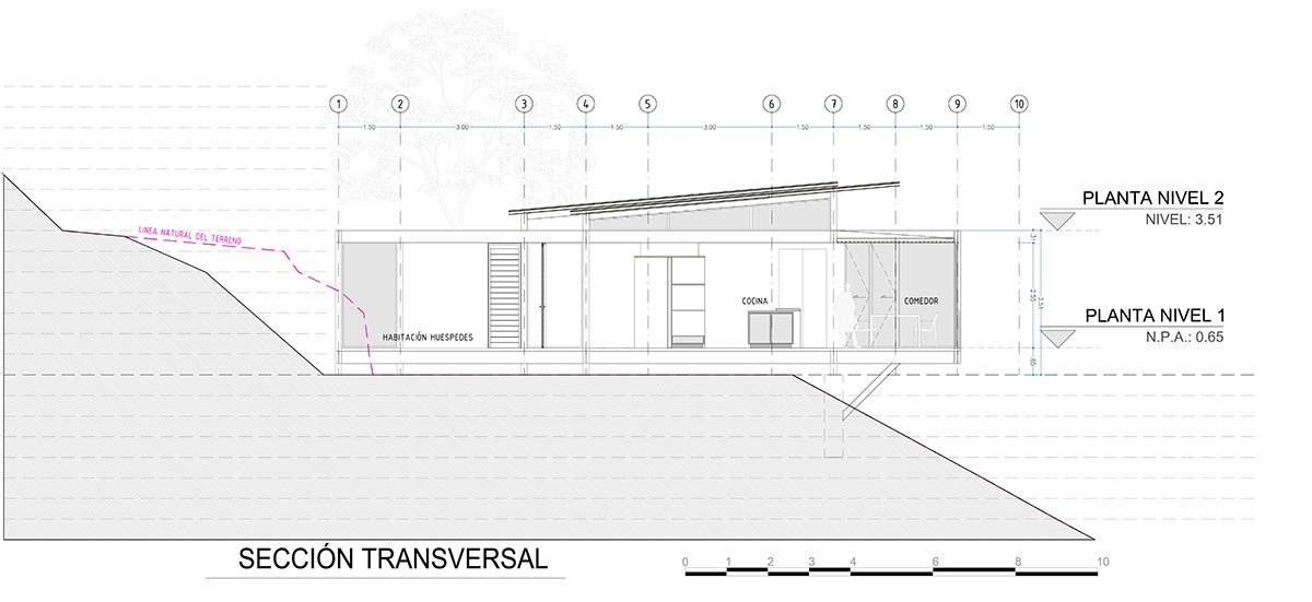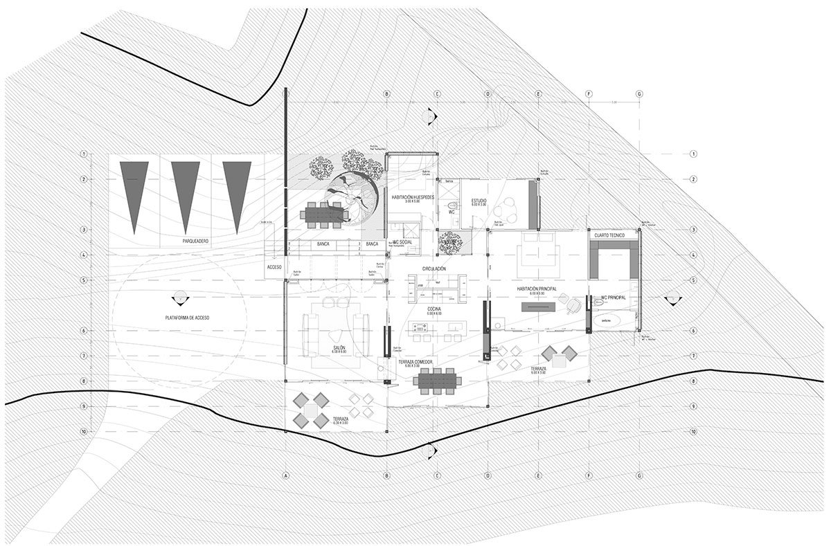 The challenge of this project was to design a house for a musician, envisioning it as a large open and connected space. For this reason, a dwelling was proposed that responds to both the program and the topography, through a succession of modules connected by overlapping terraces.
