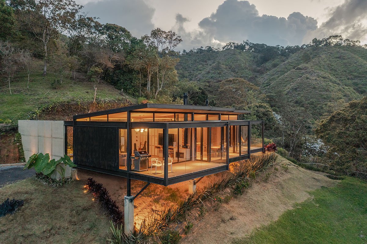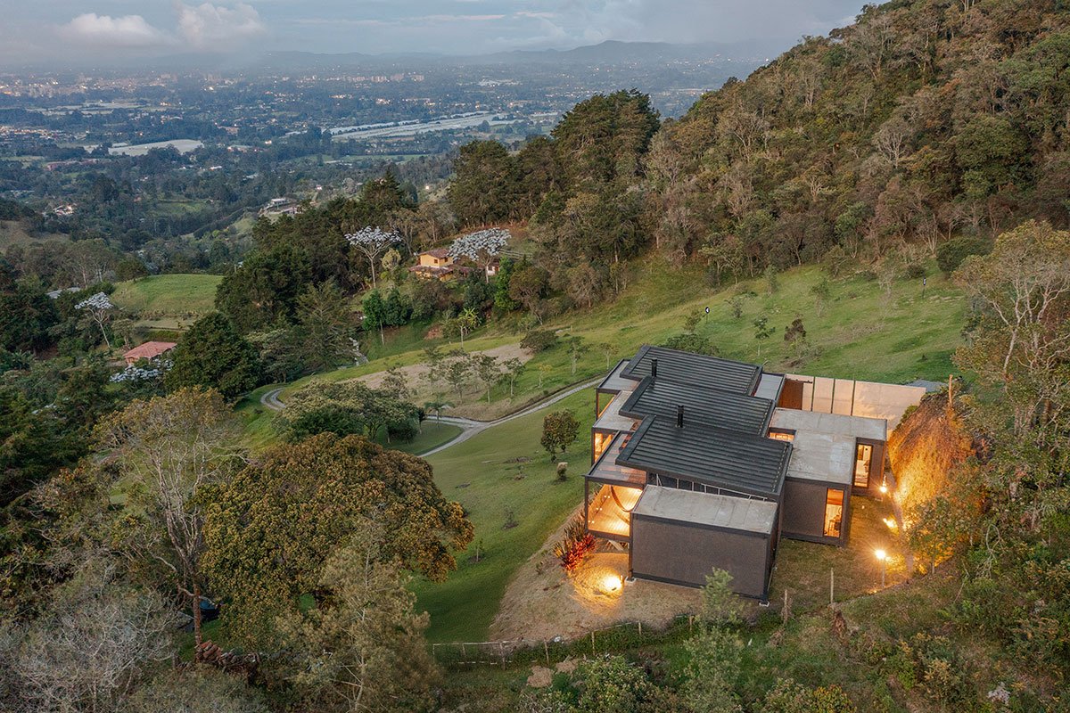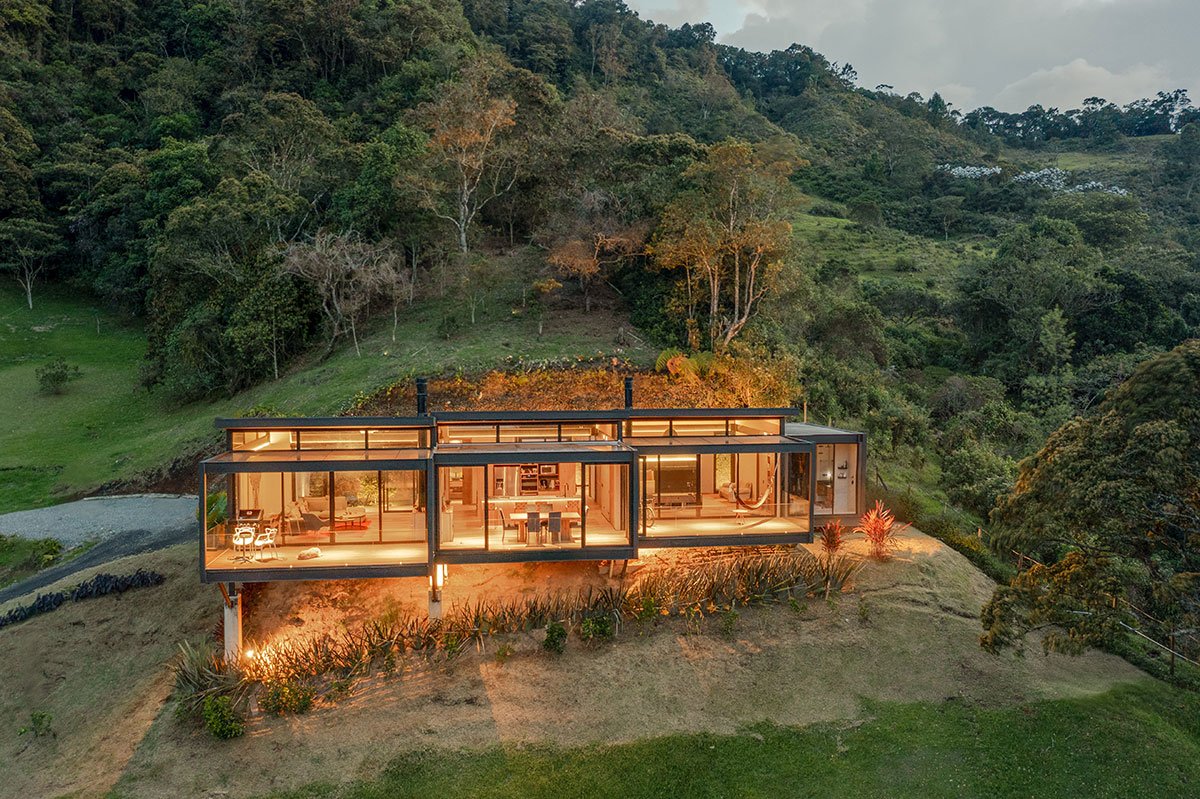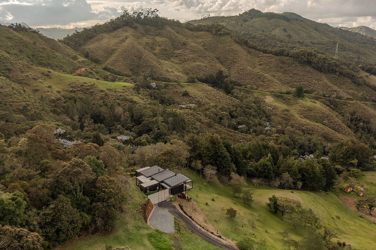 [Text as submitted by architect] Located in the high mountains of Tablacito, an hour from Medellín, in Rionegro, this floating house is set in an environment characterized by its sloping topography and natural landscape, becoming a viewpoint house with views of the San Nicolás valley. The lot has very limited flat land and significant restrictions due to required setbacks, which poses a considerable challenge for the design and construction.