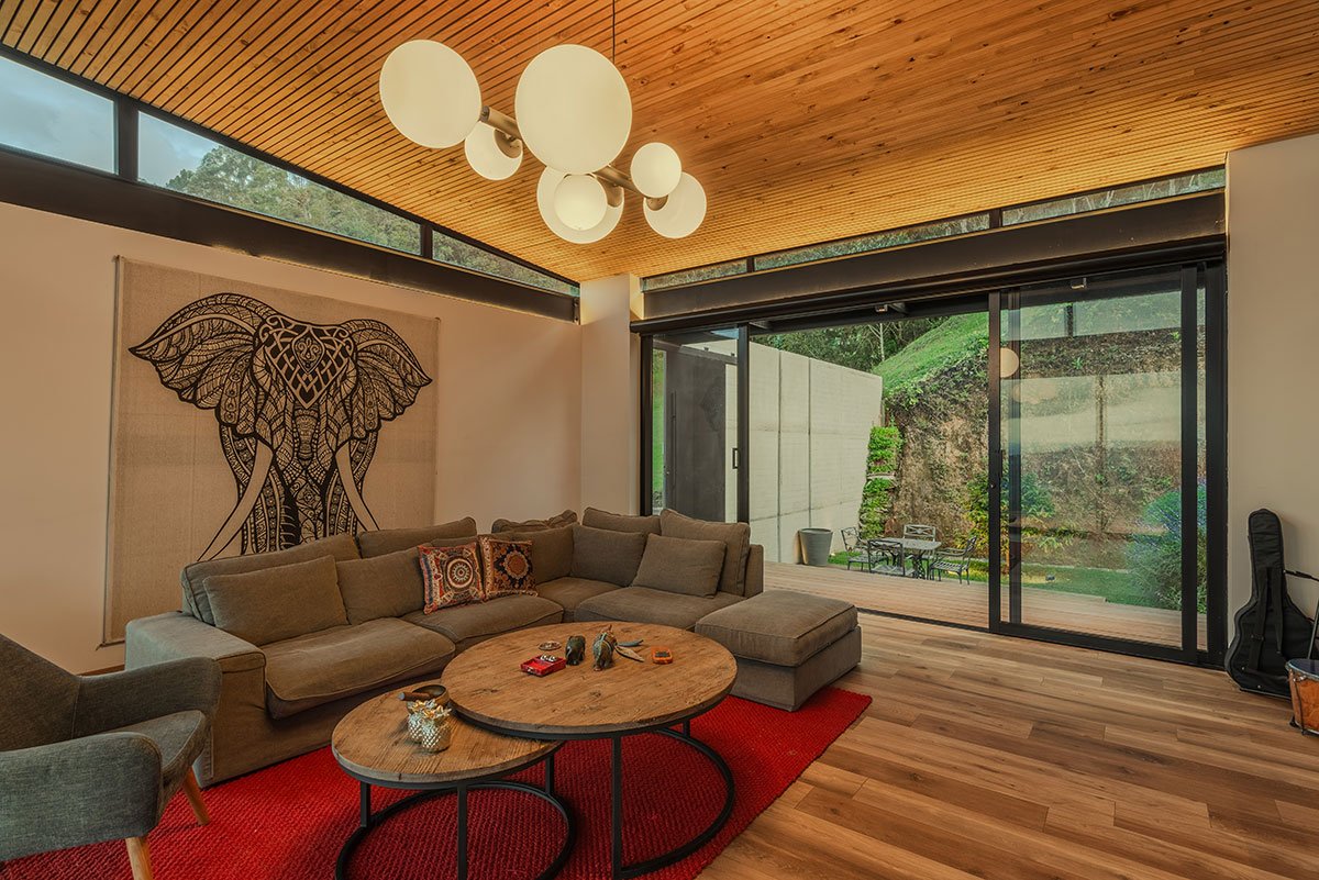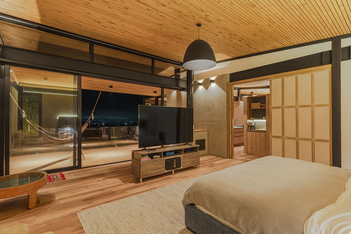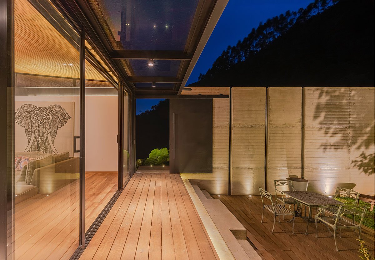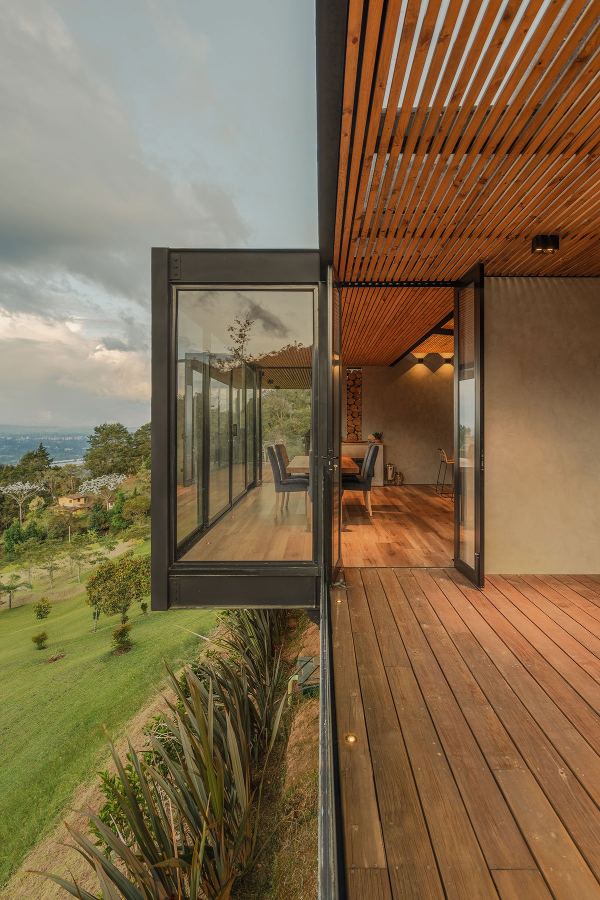 [Text as submitted by architect] Located in the high mountains of Tablacito, an hour from Medellín, in Rionegro, this floating house is set in an environment characterized by its sloping topography and natural landscape, becoming a viewpoint house with views of the San Nicolás valley. The lot has very limited flat land and significant restrictions due to required setbacks, which poses a considerable challenge for the design and construction.