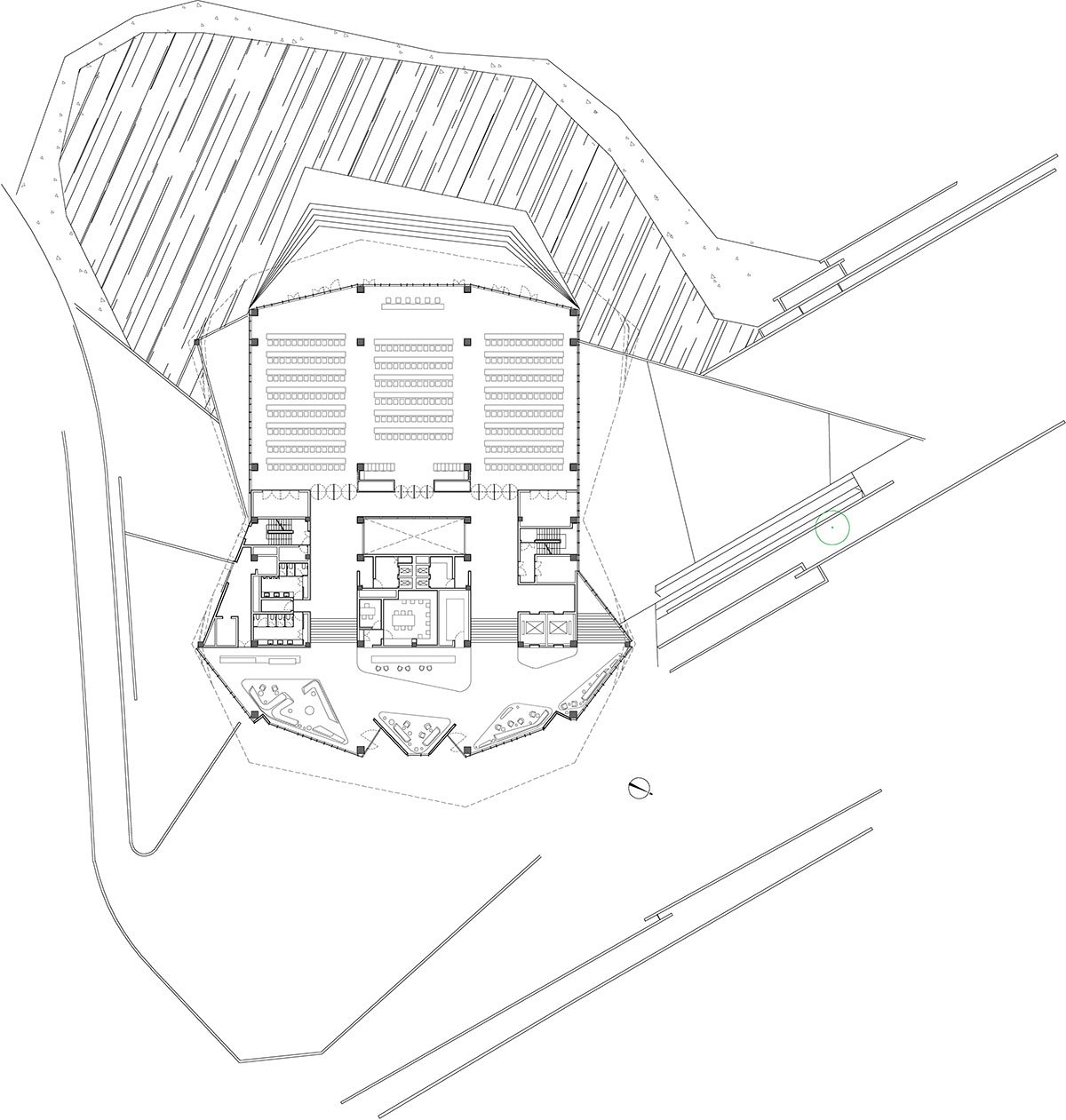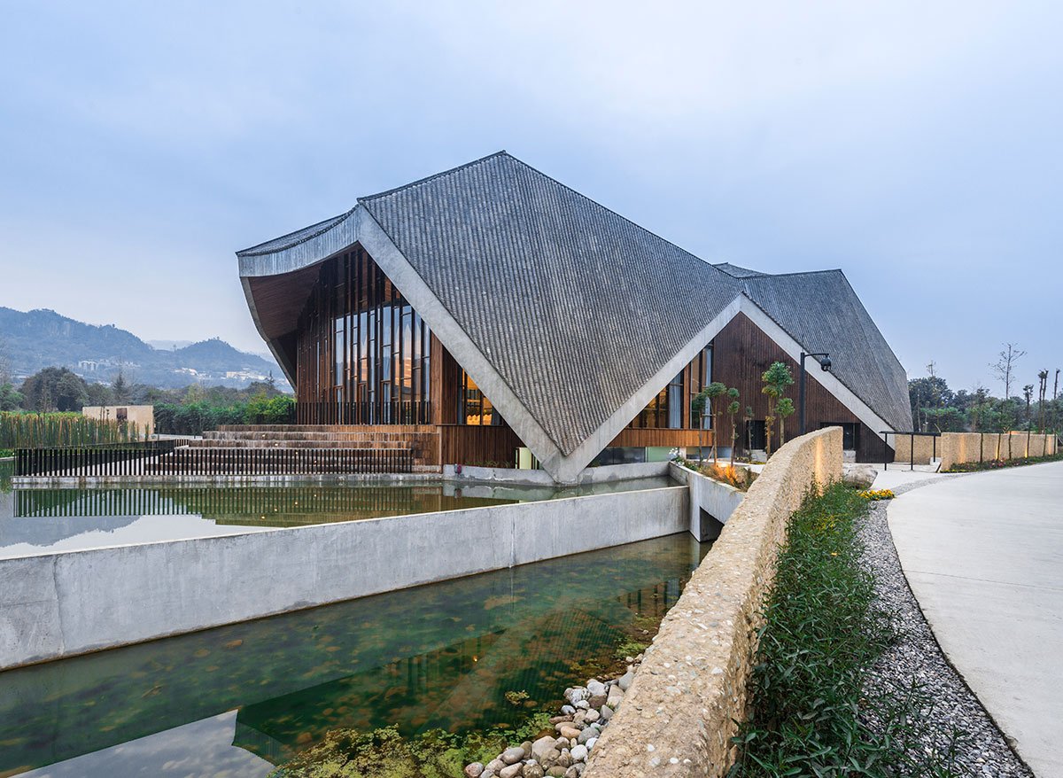 [Text as submitted by architect] A multi-functional structure that houses a wedding hall, a small museum, and a conference space on the grounds of a resort. A vaulted roof, pressed cork, and warm timber all evoke the natural surroundings without feeling redundant. Tucked below the foothills of the Luo Fu Shan range, in Sichuan, China, lies Fushengyu Hot springs Resort.