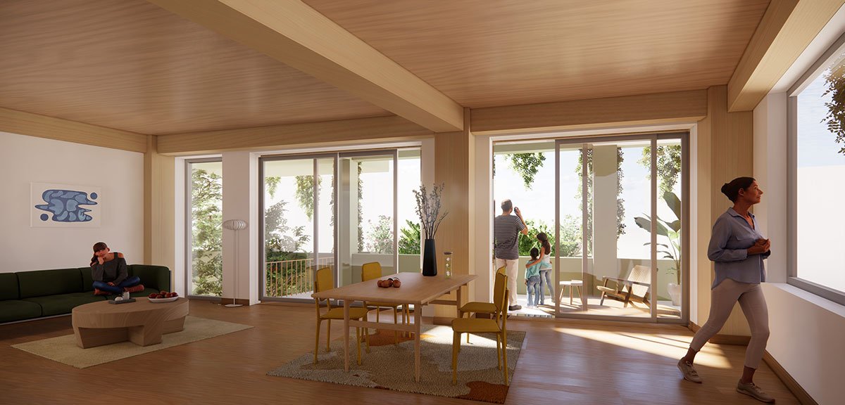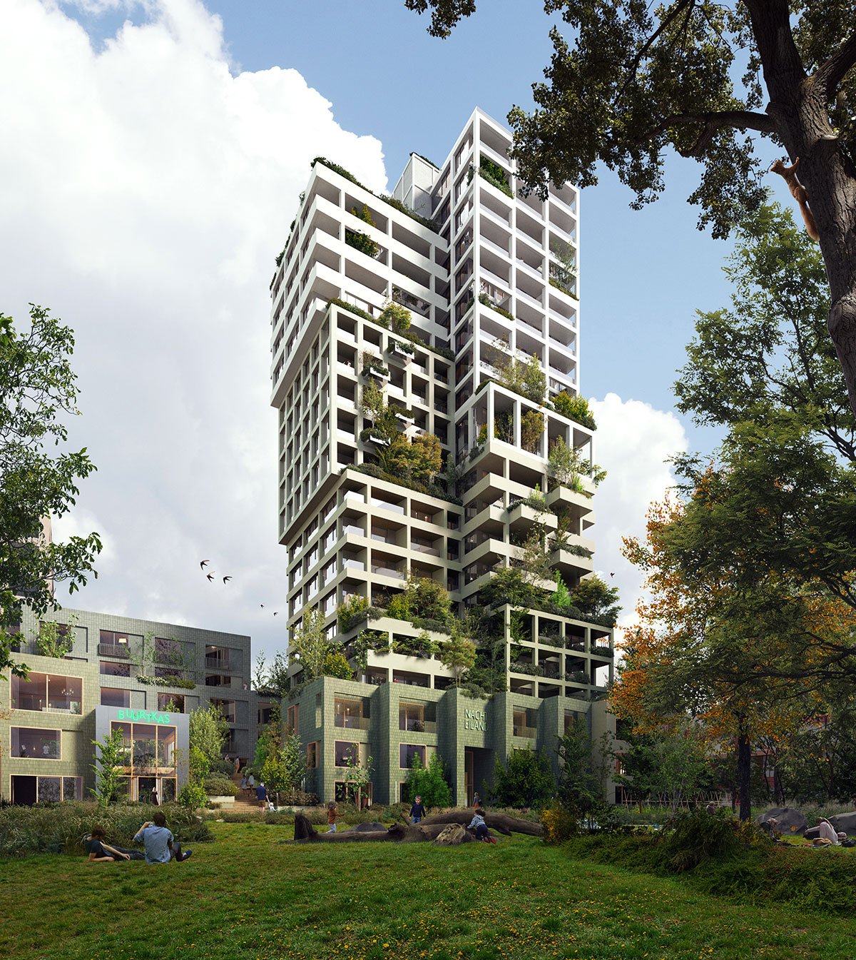 “This project is a demonstration that in addressing our housing crisis, sustainable design doesn’t need to be a ‘nice-to-have’ – it can be central to the design itself”, says MVRDV founding partner Jacob van Rijs. “As one of the most visible projects within this new neighbourhood, we are excited to set the benchmark for what can be possible in a community where greenery and sustainability are the central principles.”