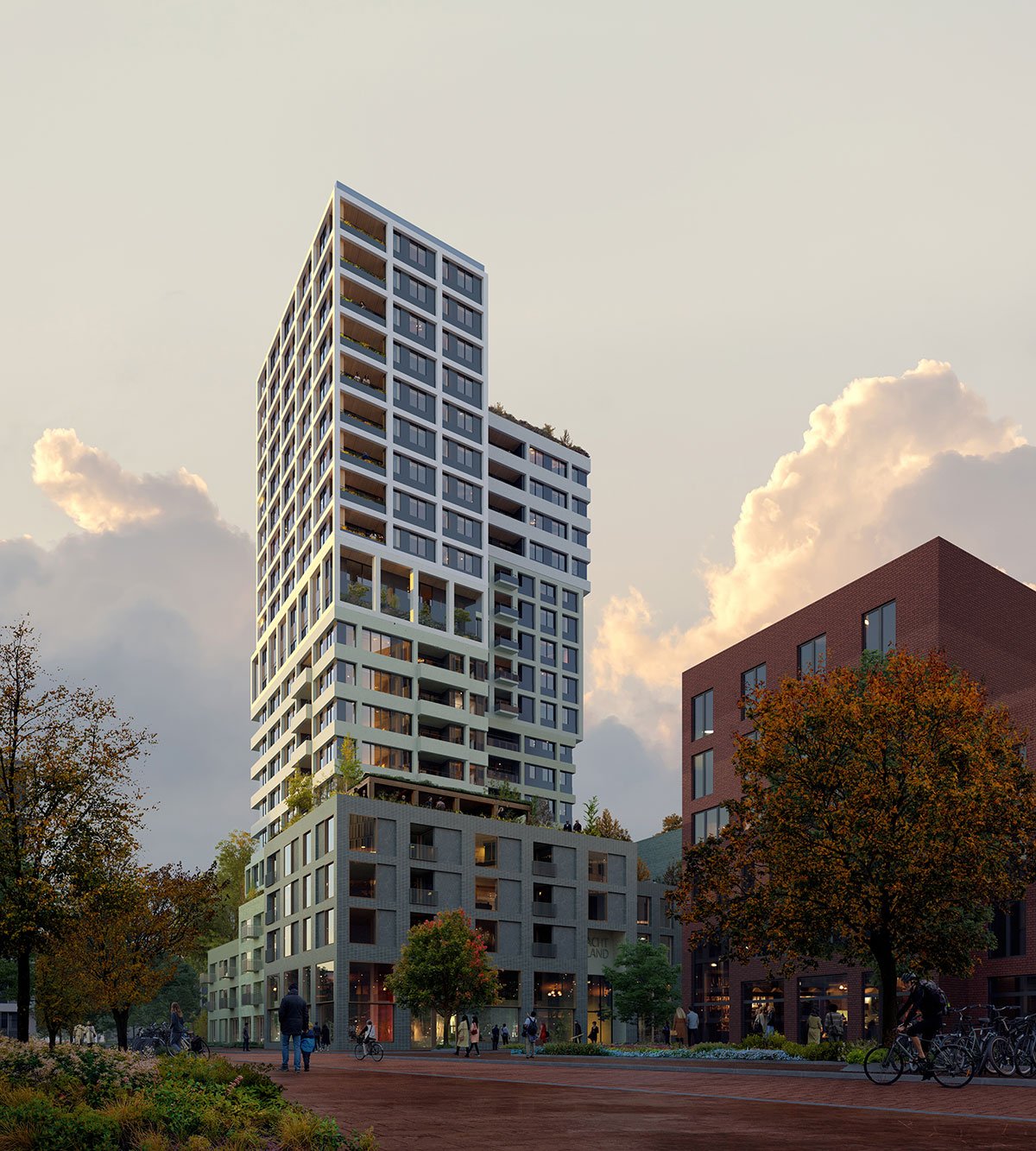 The project aims to set an example in an under-construction neighbourhood that has sustainability and greenery as its core principles. The project provides 153 homes – including 60 reserved for mid-sector rental – with a focus on apartments catering to urban households, helping to address shortfalls in Amsterdam’s current housing provision.