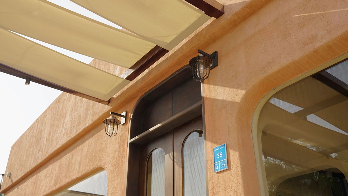 The design of Najali Café is rooted in simplicity and intentionality, where every detail has been carefully considered. Natural textures and earthy tones establish a timeless connection between the space and the desert, creating an atmosphere that feels both modern and grounded. The exterior, with its bold, textured red finish, evokes the desert’s natural hues, while rounded corners and soft edges around the glass openings mimic the wind-eroded forms of dunes.