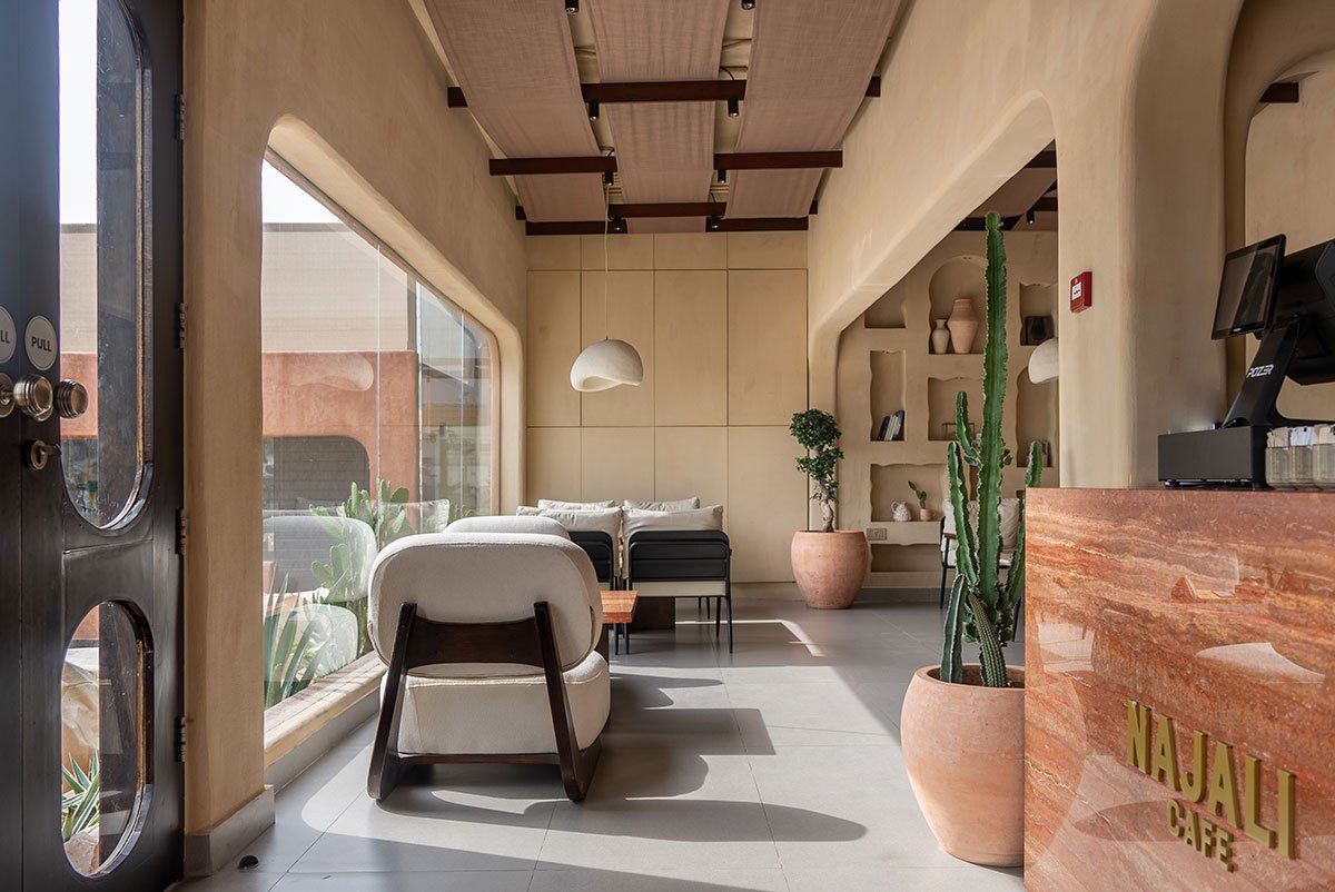 [Text as submitted by architect] Najali Café is a desert-inspired architectural masterpiece located in the heart of Doha. The café draws its essence from the timeless beauty of the desert, where endless sands, soft curves, and dancing light create a landscape of captivating serenity. This connection to the desert is central to the design, blending modern minimalism with the rich textures, tones, and heritage of Qatar’s landscapes and traditions.