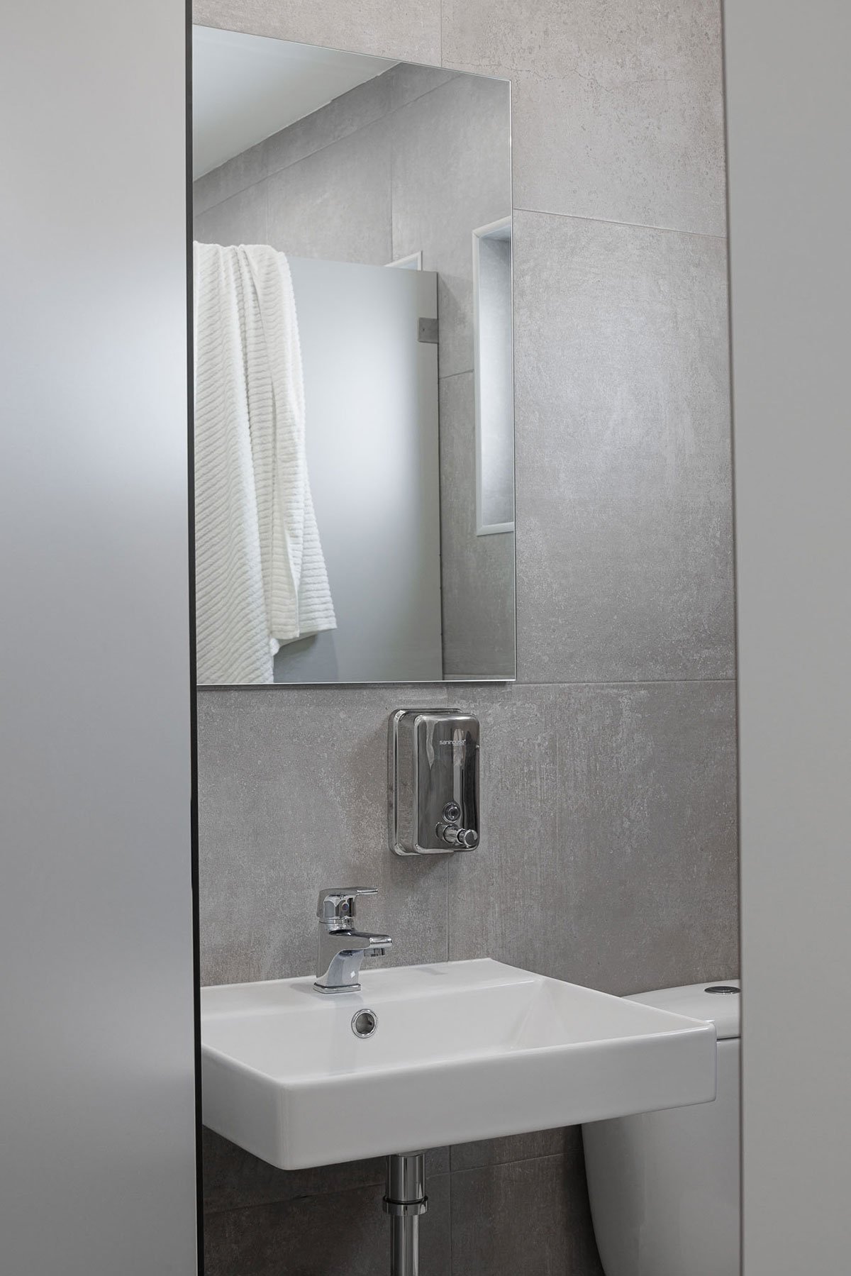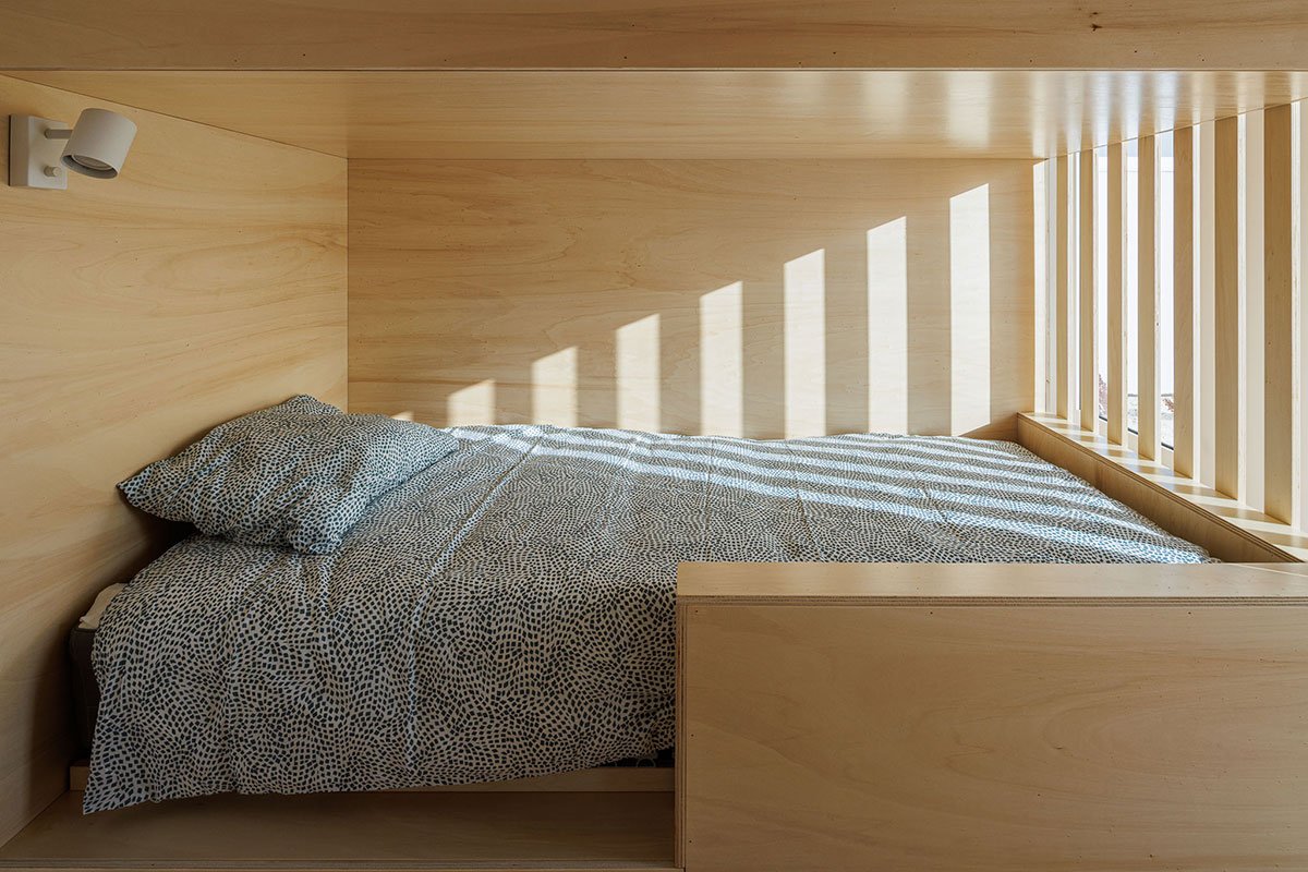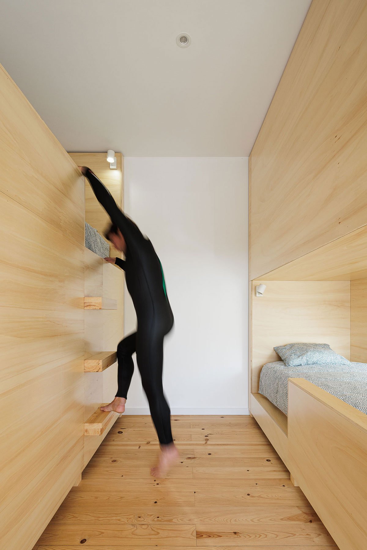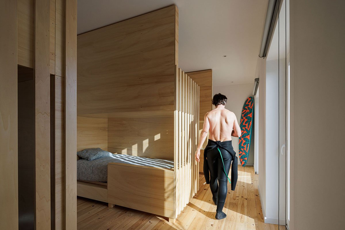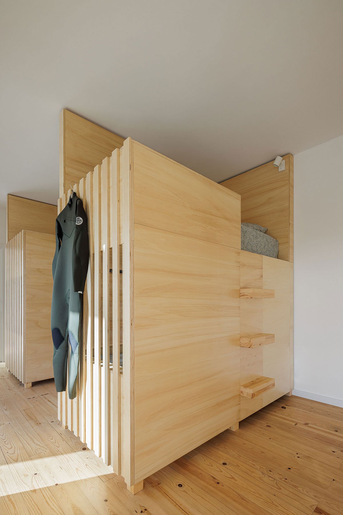 The design of the bunk beds was also a big challenge since it was about incorporating 8 beds, in 33m2, they were carefully designed in wood and developed in a way that they obtained privacy, aesthetics and functionality.
