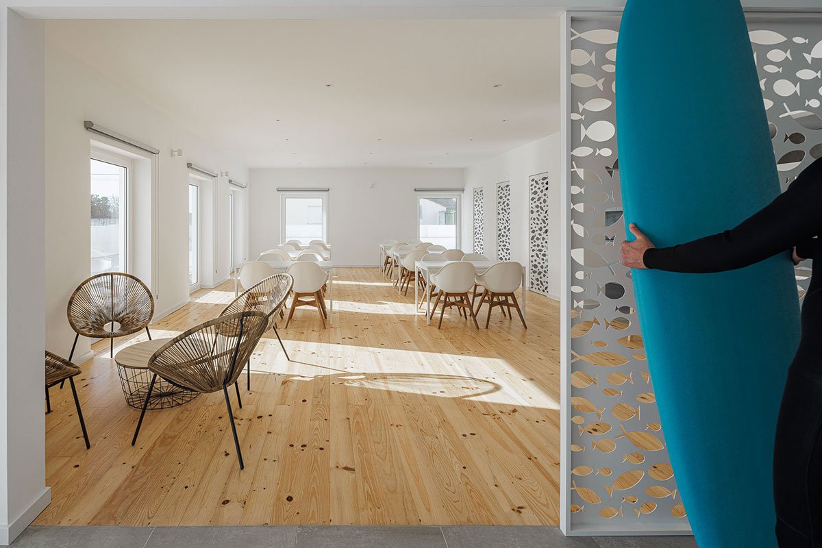 Excerpt: Rómulo Neto Arquitetos an architectural firm of Portugal remodel a deactivated primary school into a training center for the development and promotion of water sports with a holistic approach of minimalism accommodating subtle usage of the material palette.