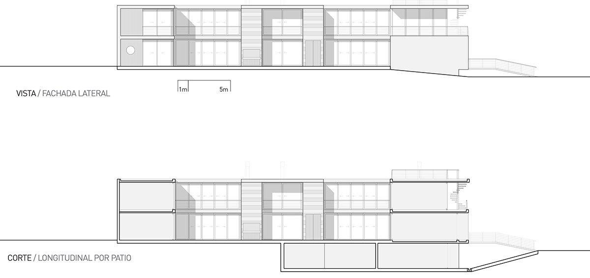 [Text as submitted by architect] Like a trident extending towards the ocean, Nautilus is located in one of the blocks in Manantiales that is closest to the sea. A ramp extending towards the street leads us to the entrance, with rectangular lines, where the use of wood as external cladding is the main feature, combined with concrete and aluminum.