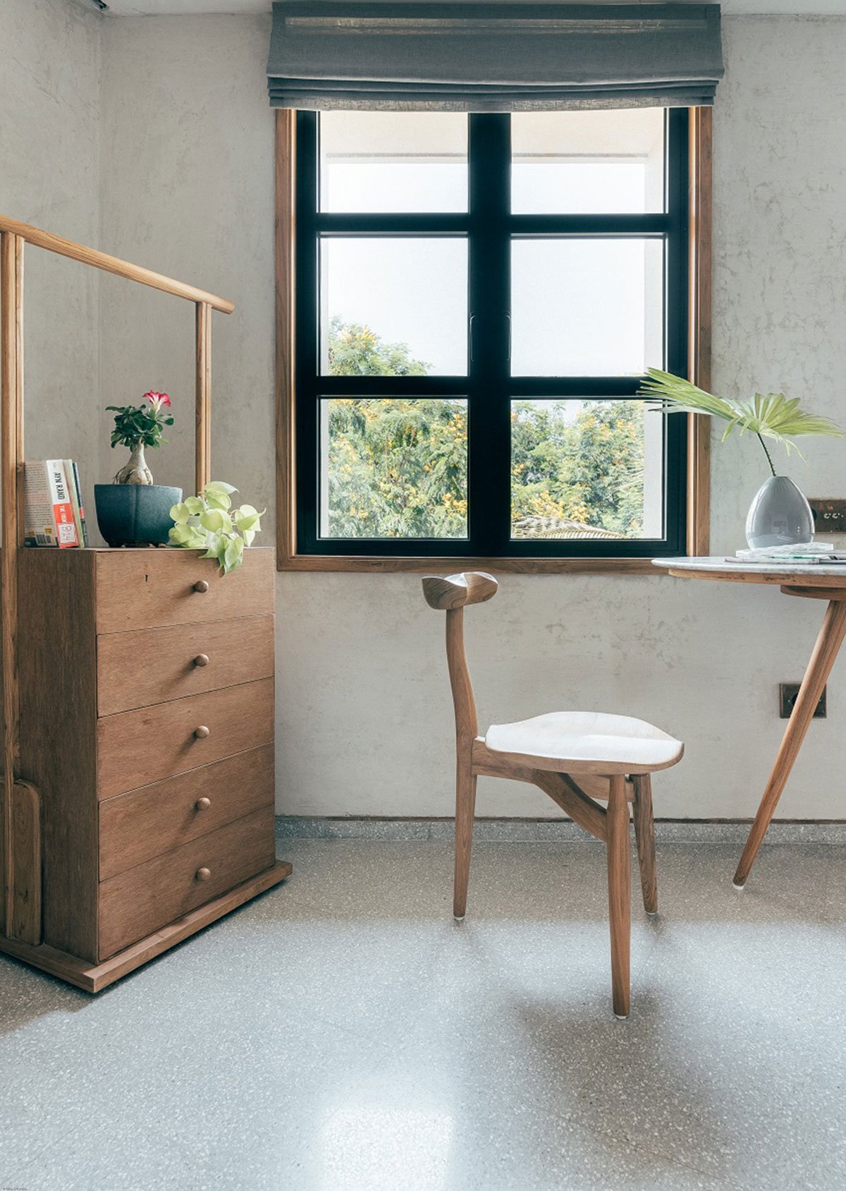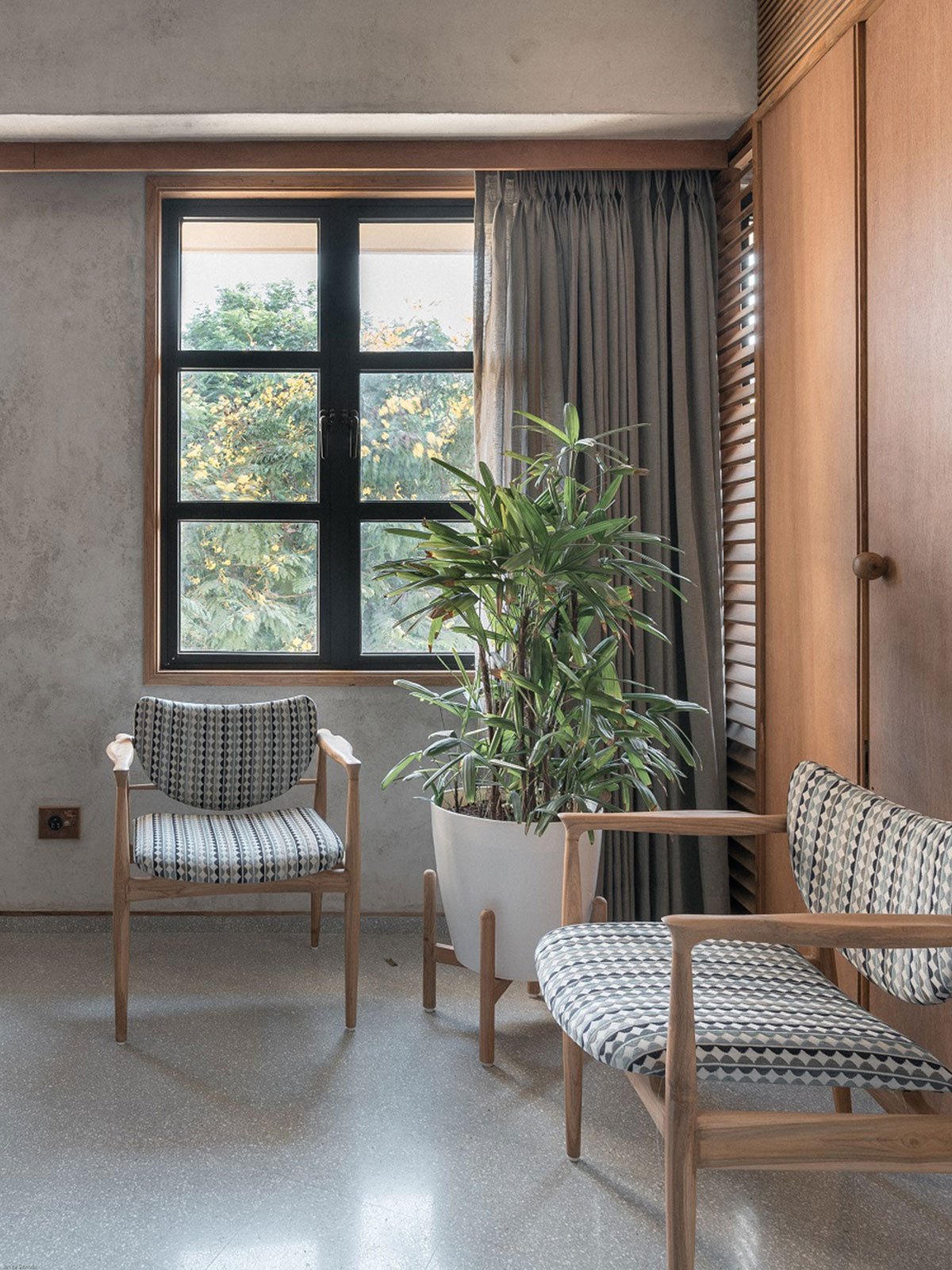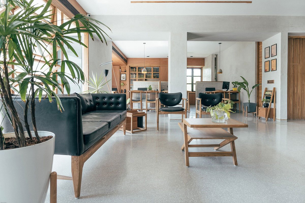The palette consists of terrazzo flooring, lime plastered walls which provides thermal comfort, reclaimed wood and plants around. A Nordic style and fading detailing techniques were embraced subsequently mixing contemporary and local design.