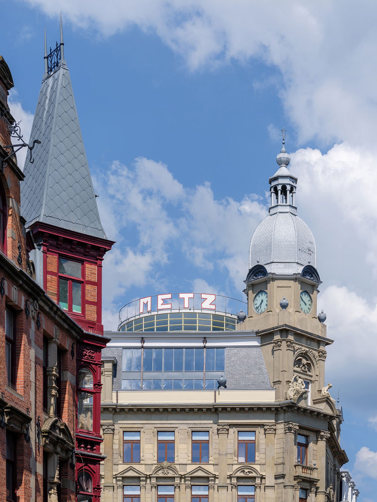 The building has a storied history: designed by Jan van Looy, when it was built in 1891 for the New York Life Insurance Company it was among the tallest private buildings in Amsterdam. For the majority of the 20th century, it was home to the Metz & Co department store and in 1933 was extended by a steel and glass rooftop pavilion designed by Gerrit Rietveld, arguably the most important Dutch architect of the modernist movement. Despite this heritage, in 2013 it became home to an Abercrombie & Fitch store; as a consequence, the upper floors including the Rietveld pavilion were closed to the public, and many of the original interior details were covered up.