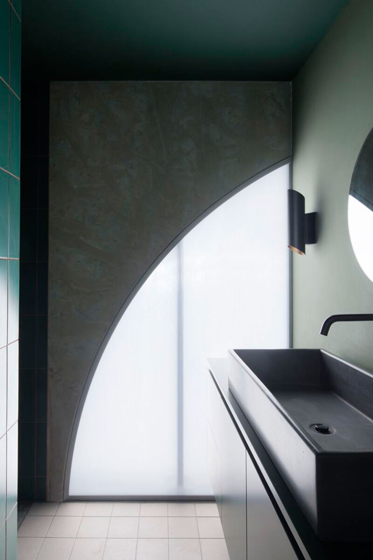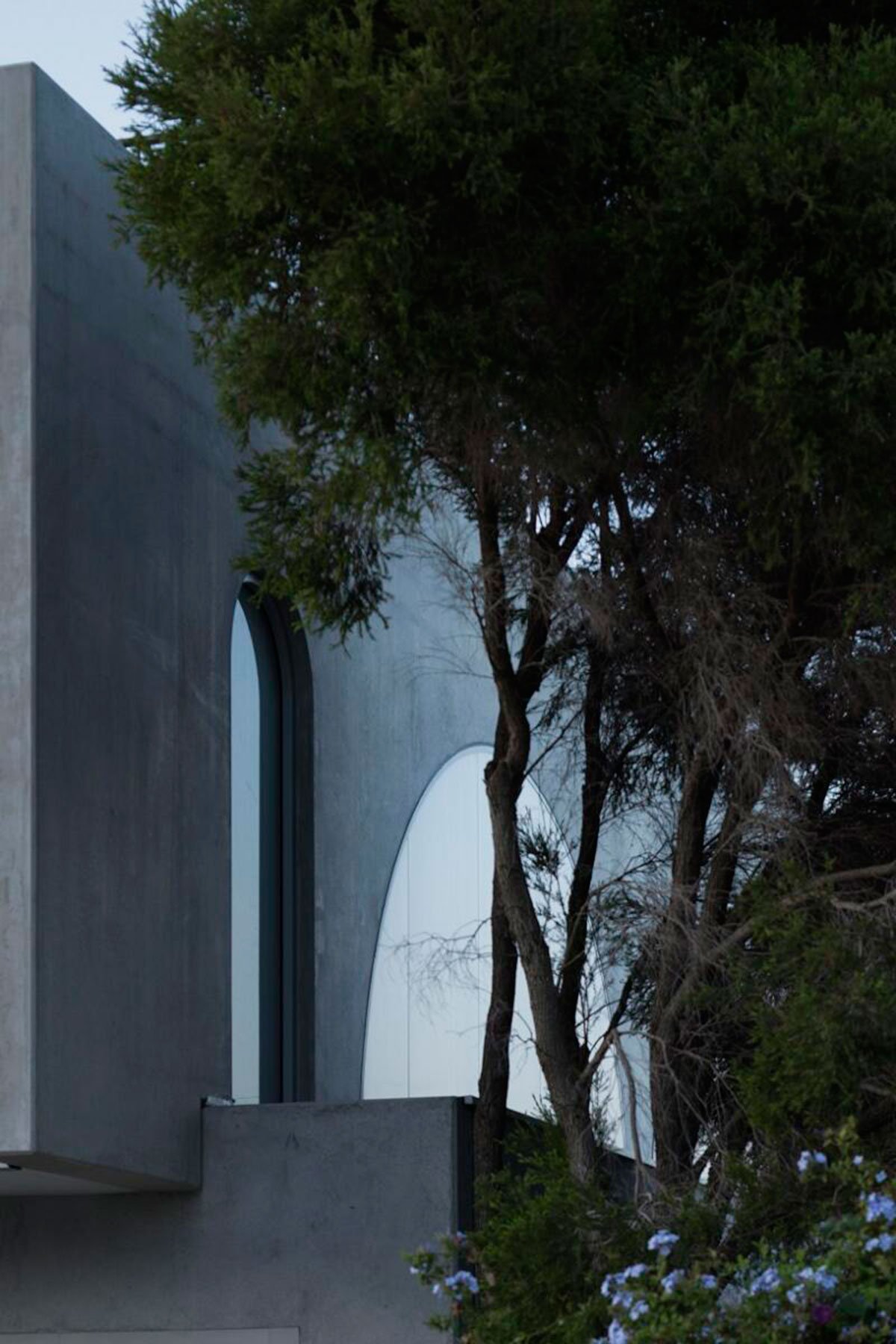 Each panel is punctuated with one of two types of arch, a grand arch, and a pedestrian arch. The grand arch is provided for the more significant gestures in the house – prospect from the kitchen, a sun-shade to the rear, a hidden robe, and a gallery window. The pedestrian arch is for clean perpendicular travel.