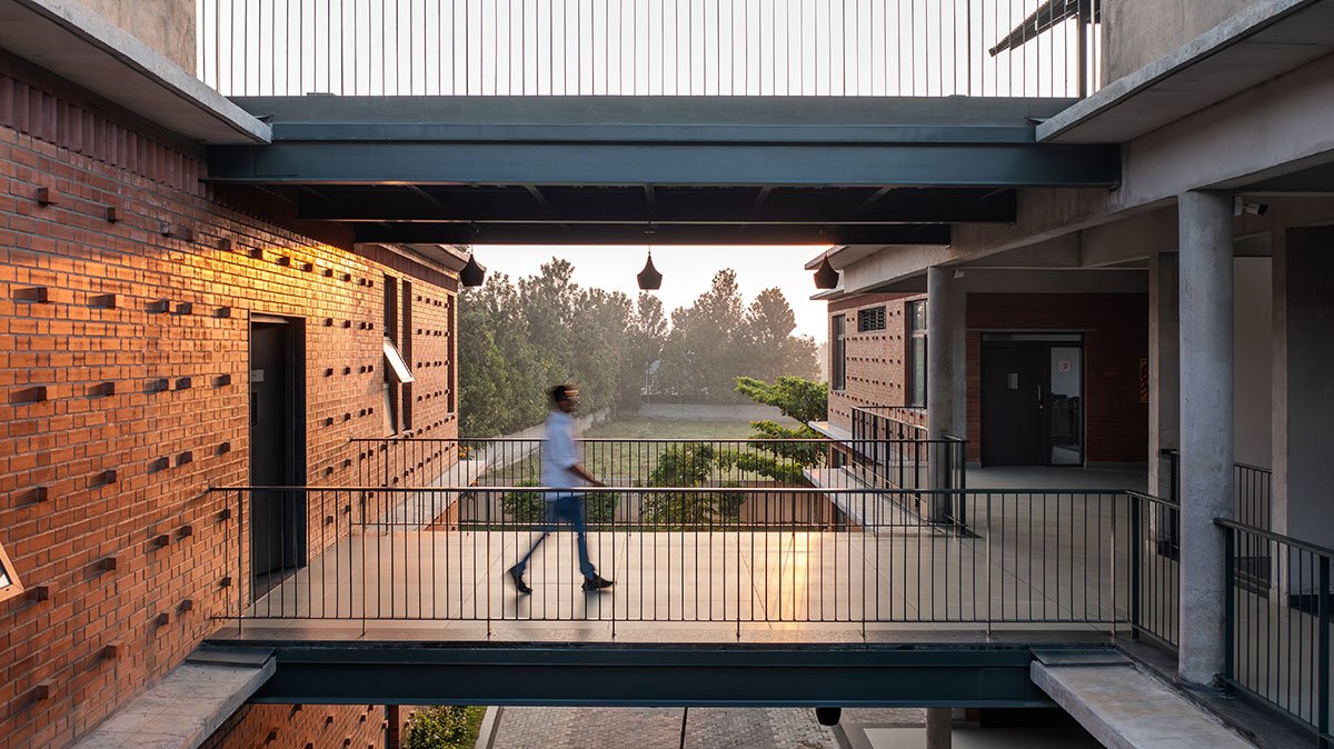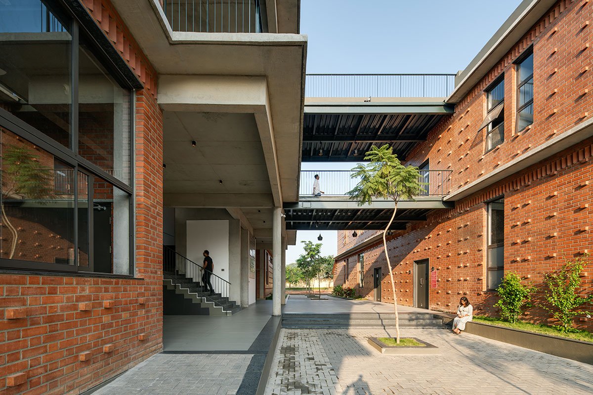 Excerpt: NSB by HabitArt Architecture Studio is a project that serves as a unique landmark with its innovative design, sustainable features, and programmatic compliance. The layout consists of two wings, academic and faculty, with an outdoor central spine that serves as a spill-out area, minimizing built circulation. All spaces are designed to capture indirect daylight and ventilation, avoiding artificial lighting and air-conditioning.