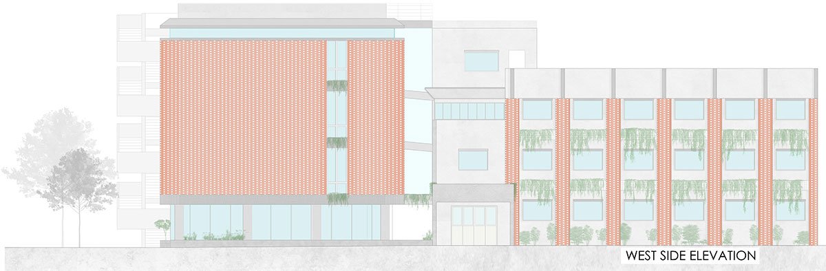 Planter spaces have been added to break the monotony of the façade and generate a sense of lightness while creating an expression to make the building come alive as the green rug partly covers the building. The overall arrangement makes an attempt to enhance the experience, make a conducive environment and harmoniously blend with the existing building.