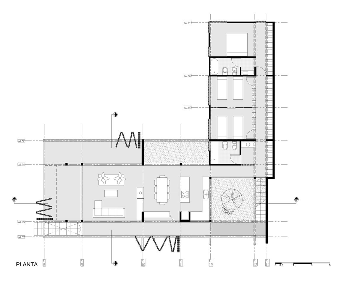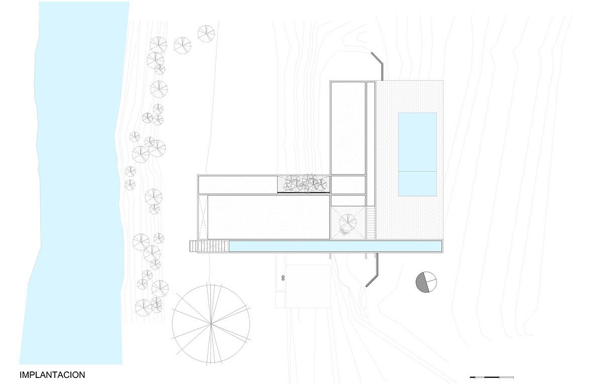 The definition of these factors is essentially defined by the beams that by location and direction determine areas of circulation and permanence in the plan as well as the purpose of public space and another private, intersecting. The result is a courtyard node between the public/private horizontally and the access and terrace/pool vertical.
