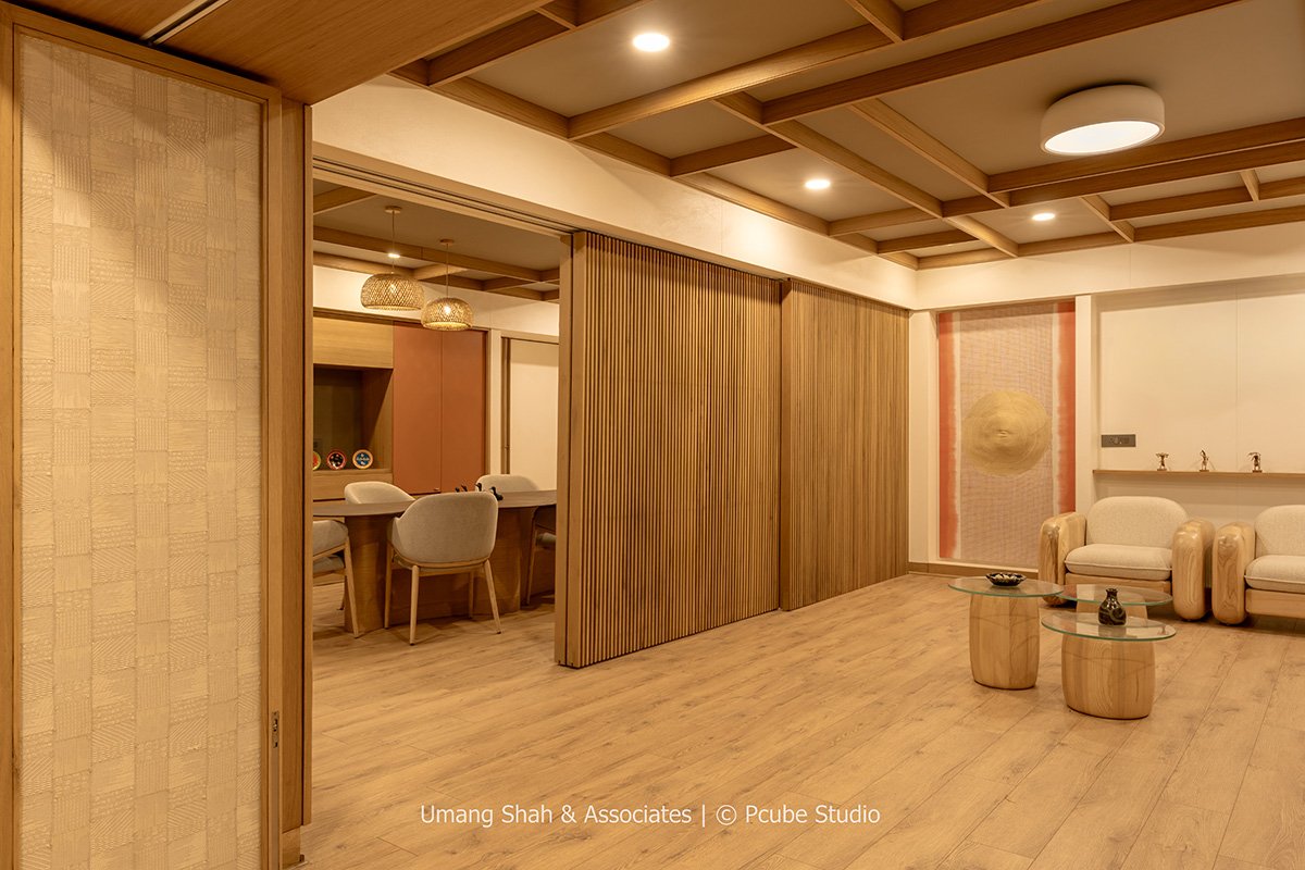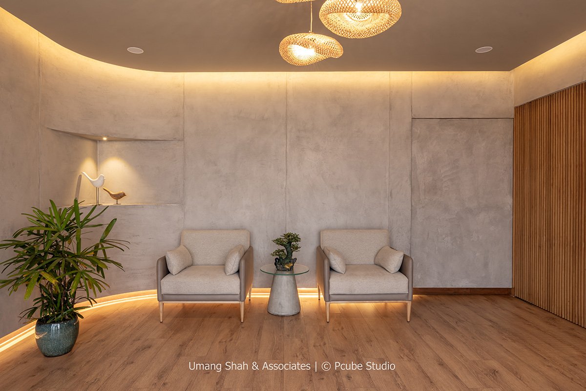 [Text as submitted by architect] Located in the industrial hub of Vatva, Ahmedabad, Office at Vatva by Umang Shah & Associates reinterprets minimalism through a Japandi lens — a design philosophy that celebrates the calm harmony of Japanese restraint and Scandinavian warmth. The client’s brief called for a workspace that clearly defined four functional zones — a foyer, personal cabin, informal meeting room, and library — while maintaining a sense of fluid connection between them.