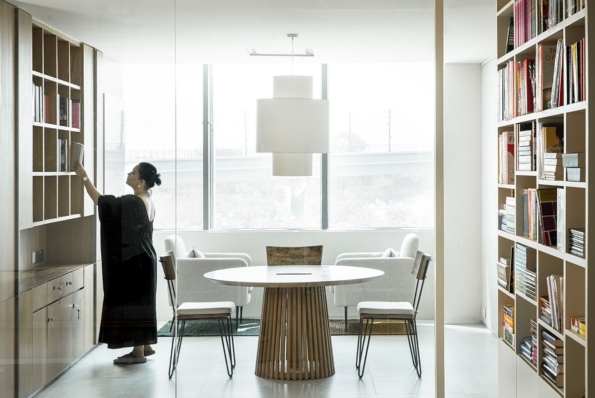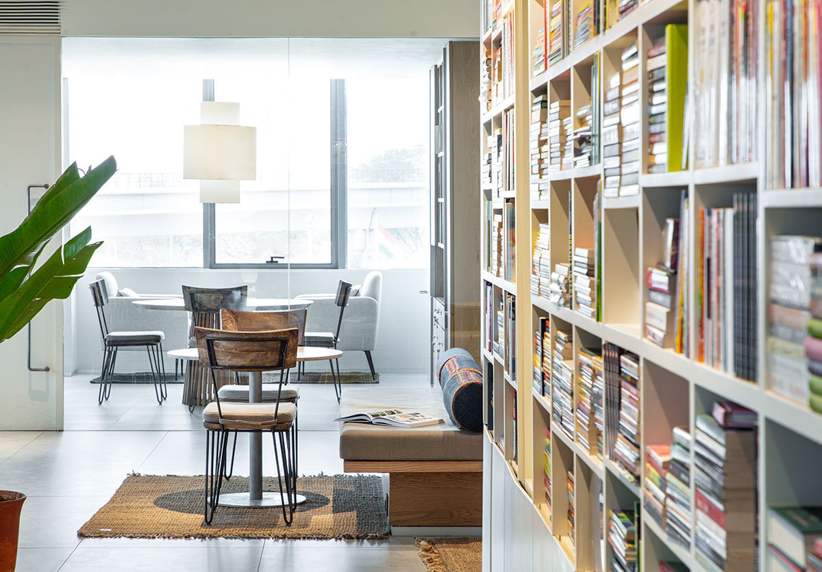 Designed by SJK Architects, Penguin Random House India’s new office headquarters in Gurugram responds to the evolving landscape of work environments. With the company’s transition from an office-first work model to a hybrid one, the design creates a post-pandemic workspace that encourages meaningful exchange and collaboration.
