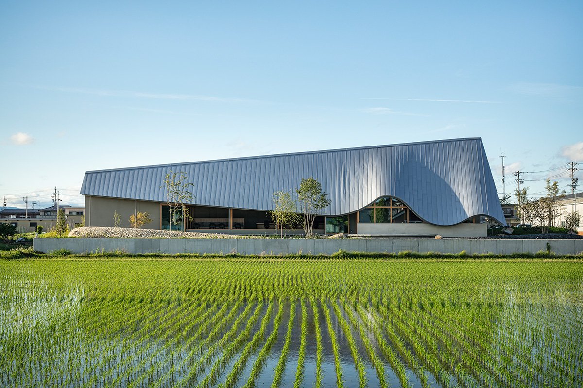 [Text as submitted by architect] The site is located in Hashima City, Gifu Prefecture, surrounded by a calm rural landscape of rice fields. On our first visit, the sight of rice ears swaying in the wind descending from the nearby mountains left a strong impression.