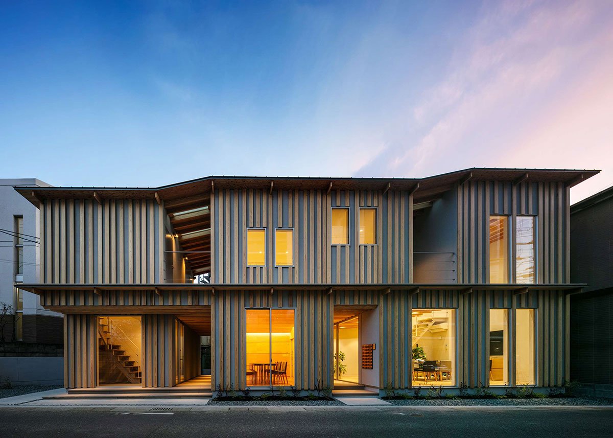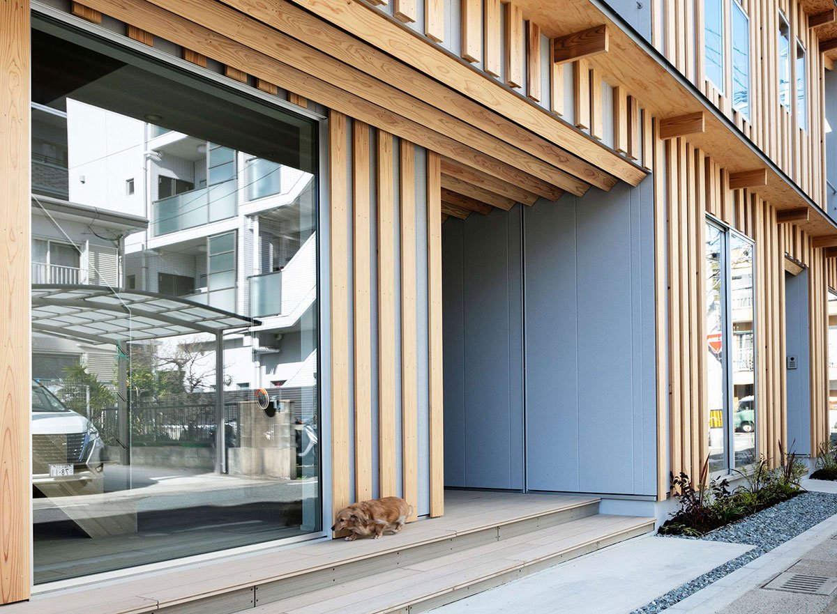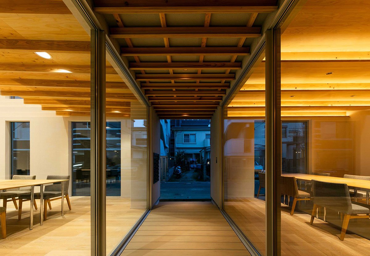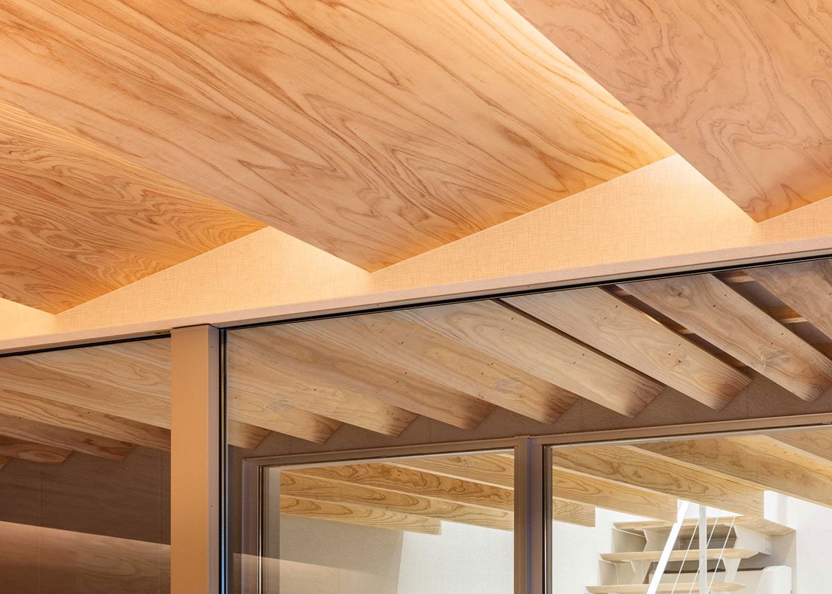 [Text as submitted by architect] ”One large roof” connects the office space and seminar room together with a semi-outdoor terrace to create a building where people can gather. We designed a warm office by using a lot of wood inside and outside.