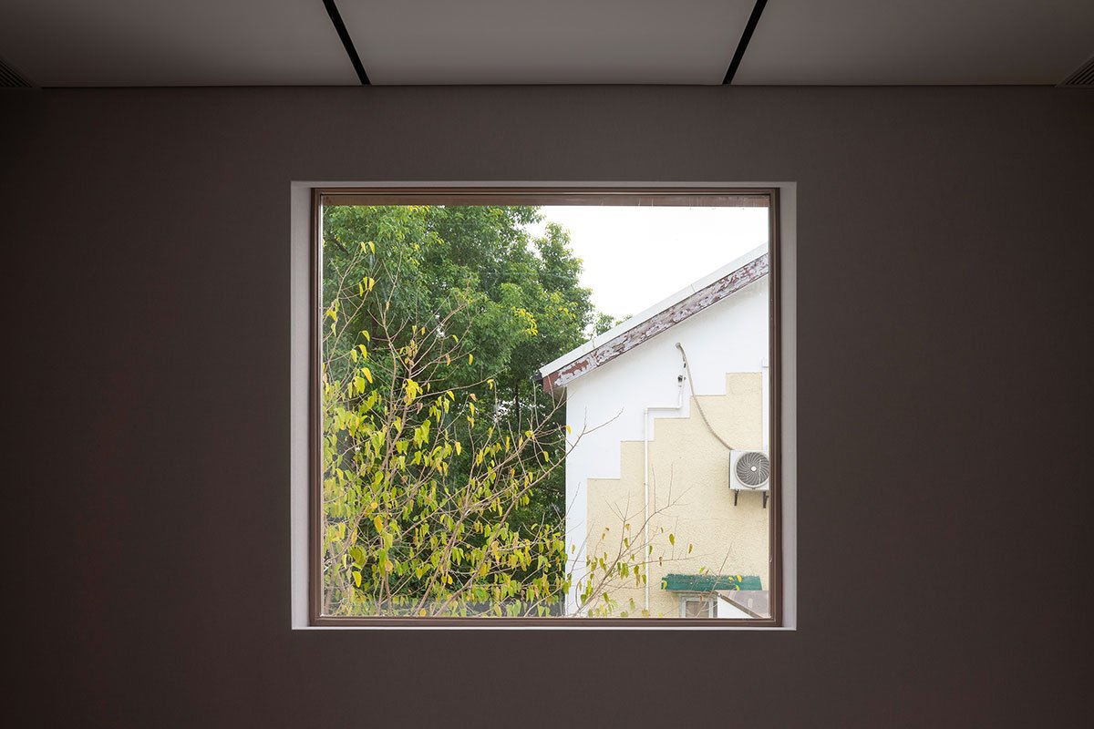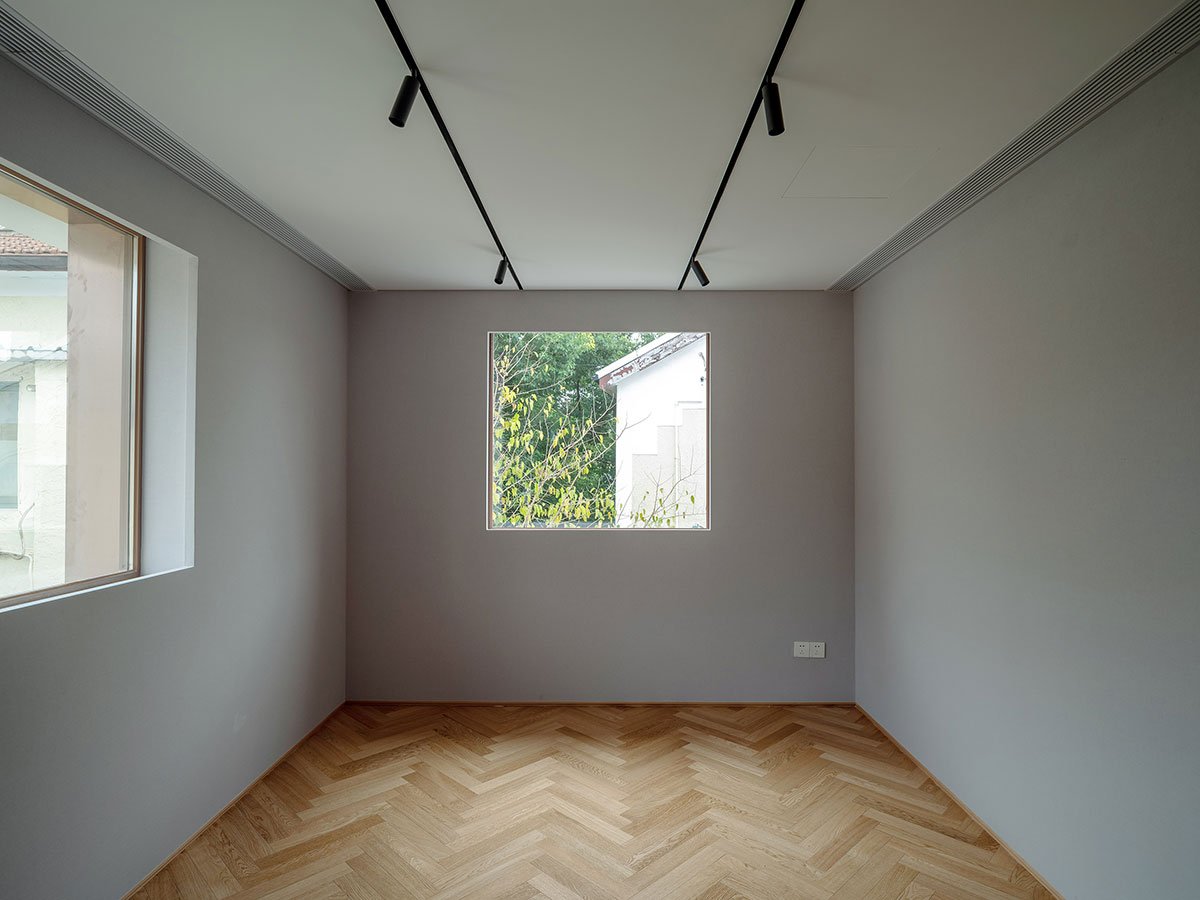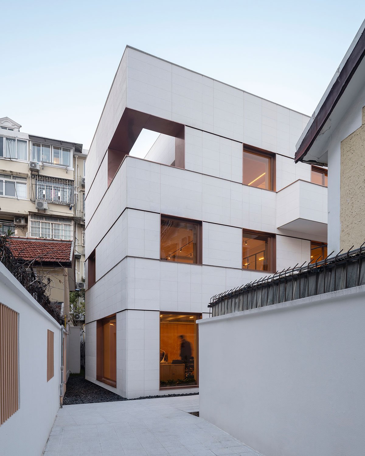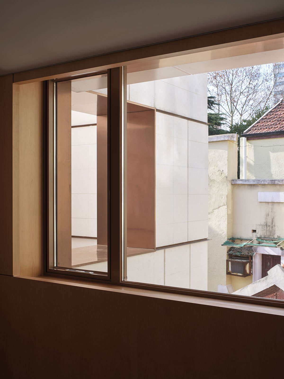 The building can be neither a nostalgia of concession, nor a mimic of modernism. It can only be itself under specific conditions, trying to fit in while confronting its surroundings. The building has only one exposed facade while the volume was missing on the southwest corner. By making up the walls on the corner, the outline is completed, which offers a special moment of the building. The intact and abstract massing stands out from its surroundings, while the opening on the corner variates the repetition of the existing windows. It also provides a frame looking at the neighborhood, which works as a supplement to the limited outdoor space.