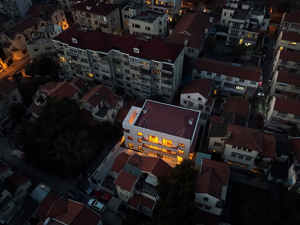 [Text as submitted by architect] A series of interventions breathes new life into the 3-story brick-concrete pseudo garden villa built in the 1990s in Shanghai French Concession. The building experienced several times of refurbishment, lacking a legible structure system and stylistic characteristics. It is a mundane patch among the neighborhood, juxtaposed with garden villas, 6-story public housing and office towers to the further north.