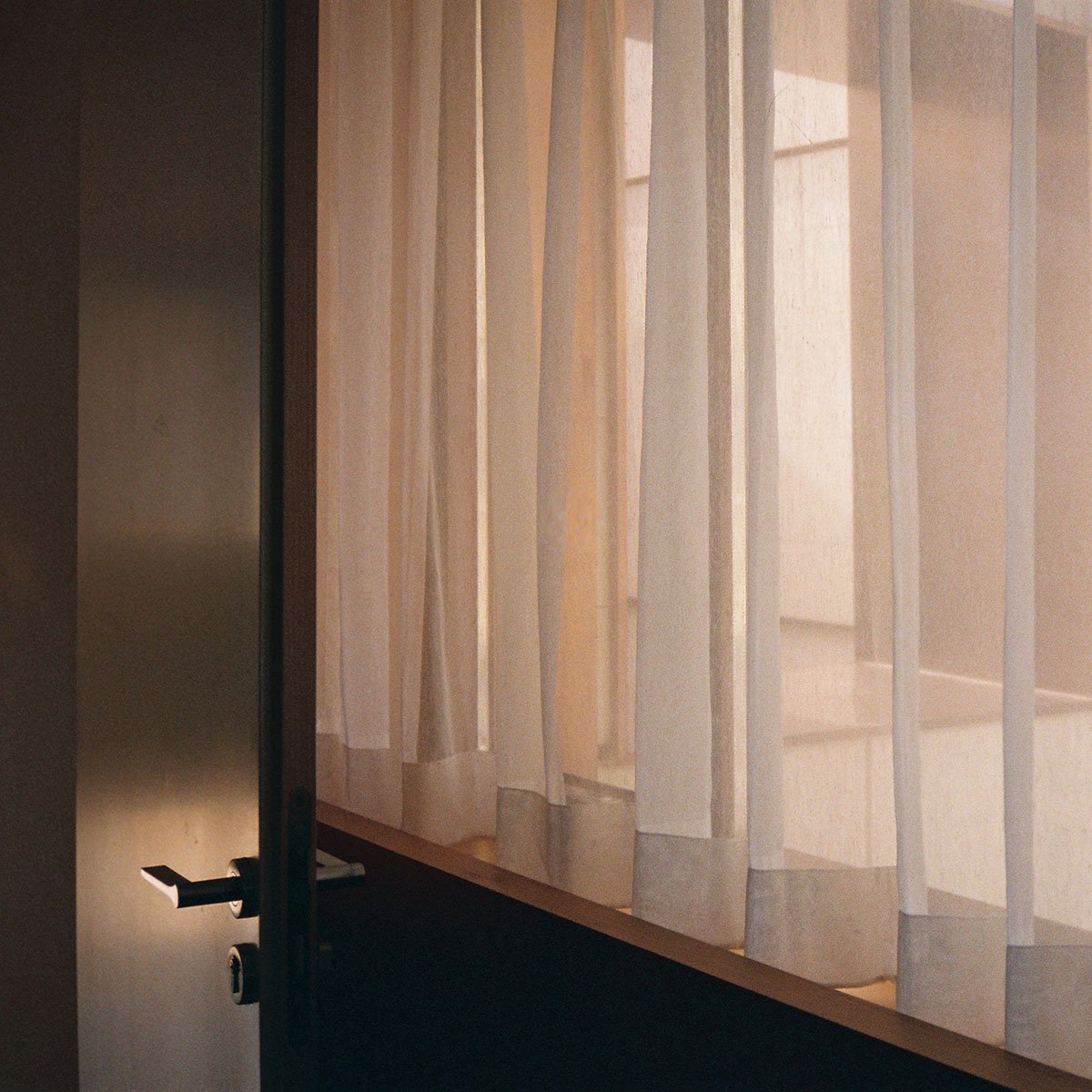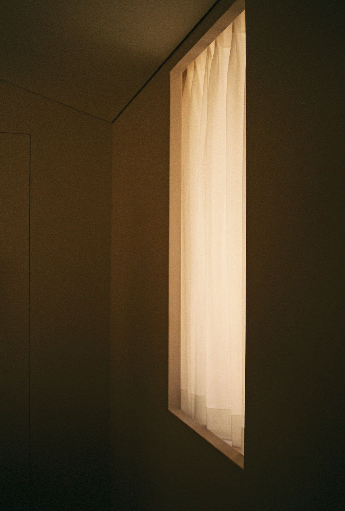 The window detail is a featured element in this project. To adopt curtain rod or curtain box are not ideal solutions, because the existing window openings are small. The architects decided to add depth to the walls, which forms smaller openings offset from existing openings. This detail helps solve several issues. The curtain track could be better concealed; the thick window frame and construction defect could be partly covered; the skirting board could be flush to the wall.