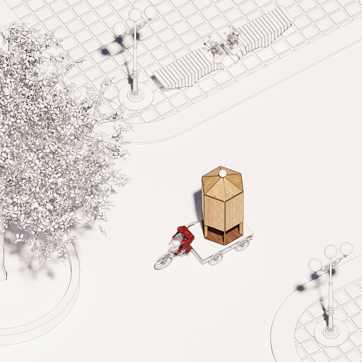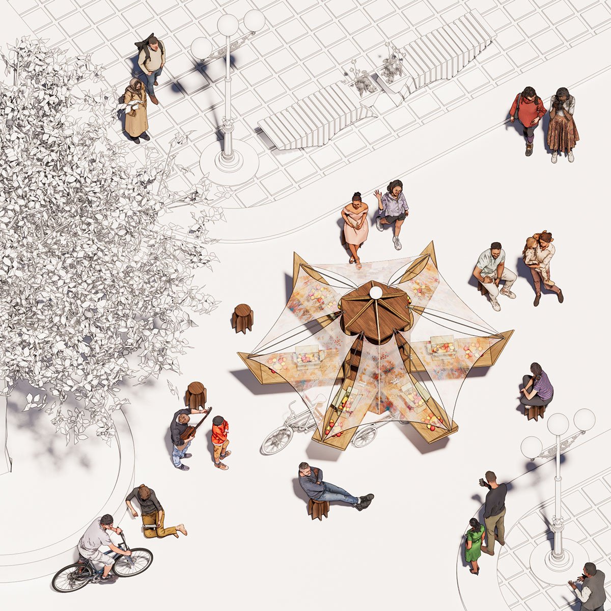 A Mobile Market Solution: At the heart of OffTheFarm – Folks is a fleet of foldable, modular carts crafted from sustainable materials. These carts serve as mobile micro-markets, allowing vendors to travel to different locations, access new demographics, and activate underutilized urban spaces. The initiative fosters a flexible, decentralized market system, reducing reliance on fixed, static locations and offering a dynamic alternative to traditional retail structures.