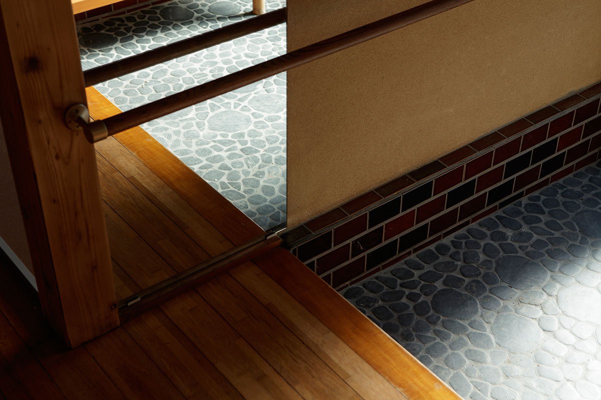 To emphasise those differences, each space received a unique texture and tone: the previous tatami floor didn’t fit anymore with the new purpose of a working and living environment, and it was replaced with a cushion one.
