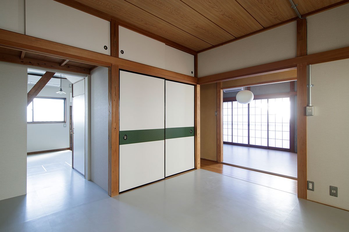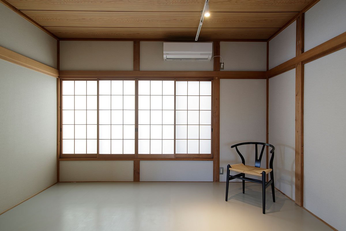 On the second story, the project moved from a renovation to a restoration. In fact, nothing has been changed or moved but only repaired. The surface mats of the tatami in the Japanese-style room were replaced and put back in place, while the walls had been newly wallpapered.