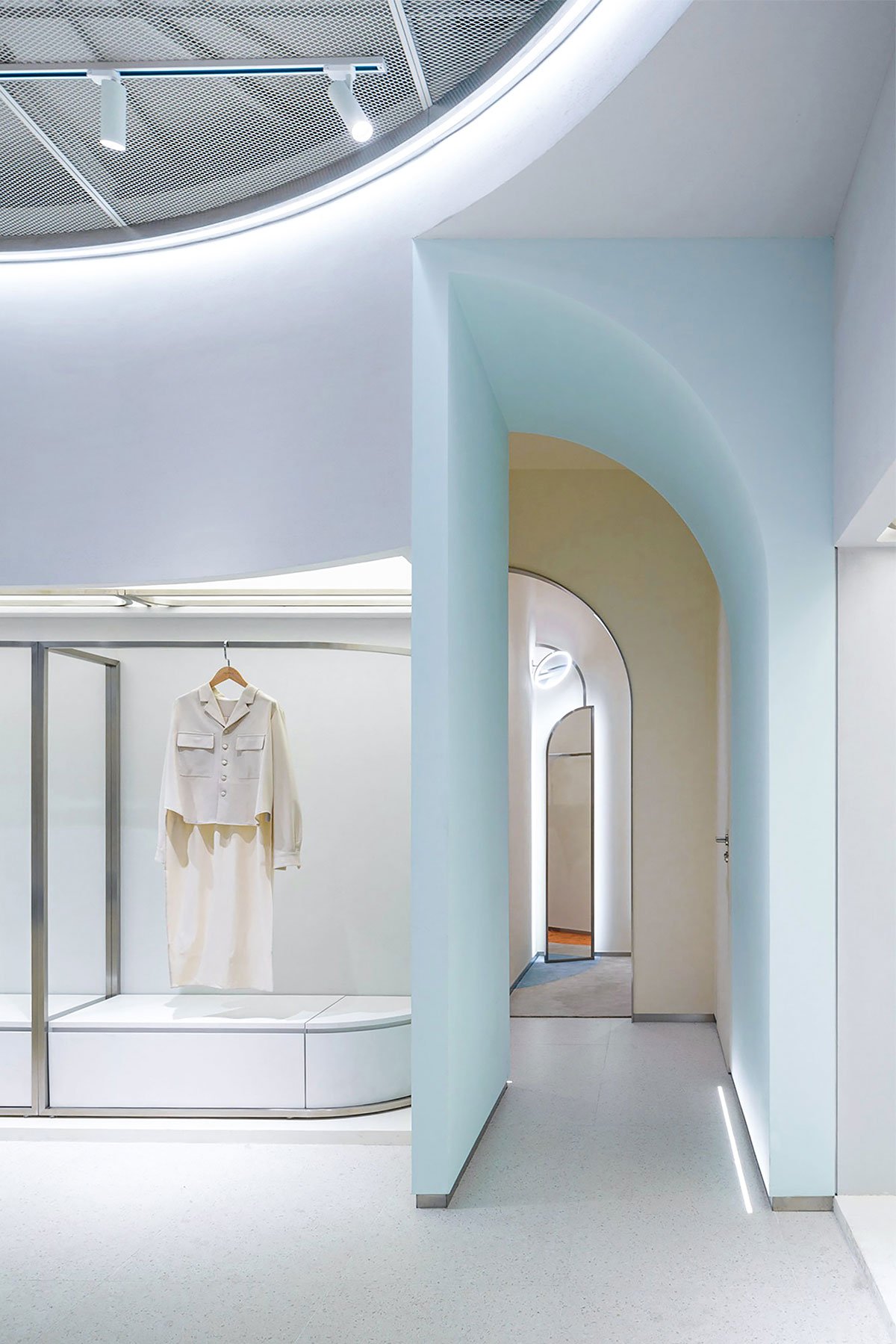 [Text as submitted by architect] Situated in a prominent position within Shanghai’s Bund Financial Center, ON/OFF is a multi-brand store focused on up-and-coming fashion designers. Studiolite’s design aims for a trendy, artistically-inspired experience through high-end, layered spaces. By interweaving lighting, atmosphere, artful color composition, and the whimsical collision of delicate materials, a dynamic spatial succession is formed, channeling the city’s youthful vitality.