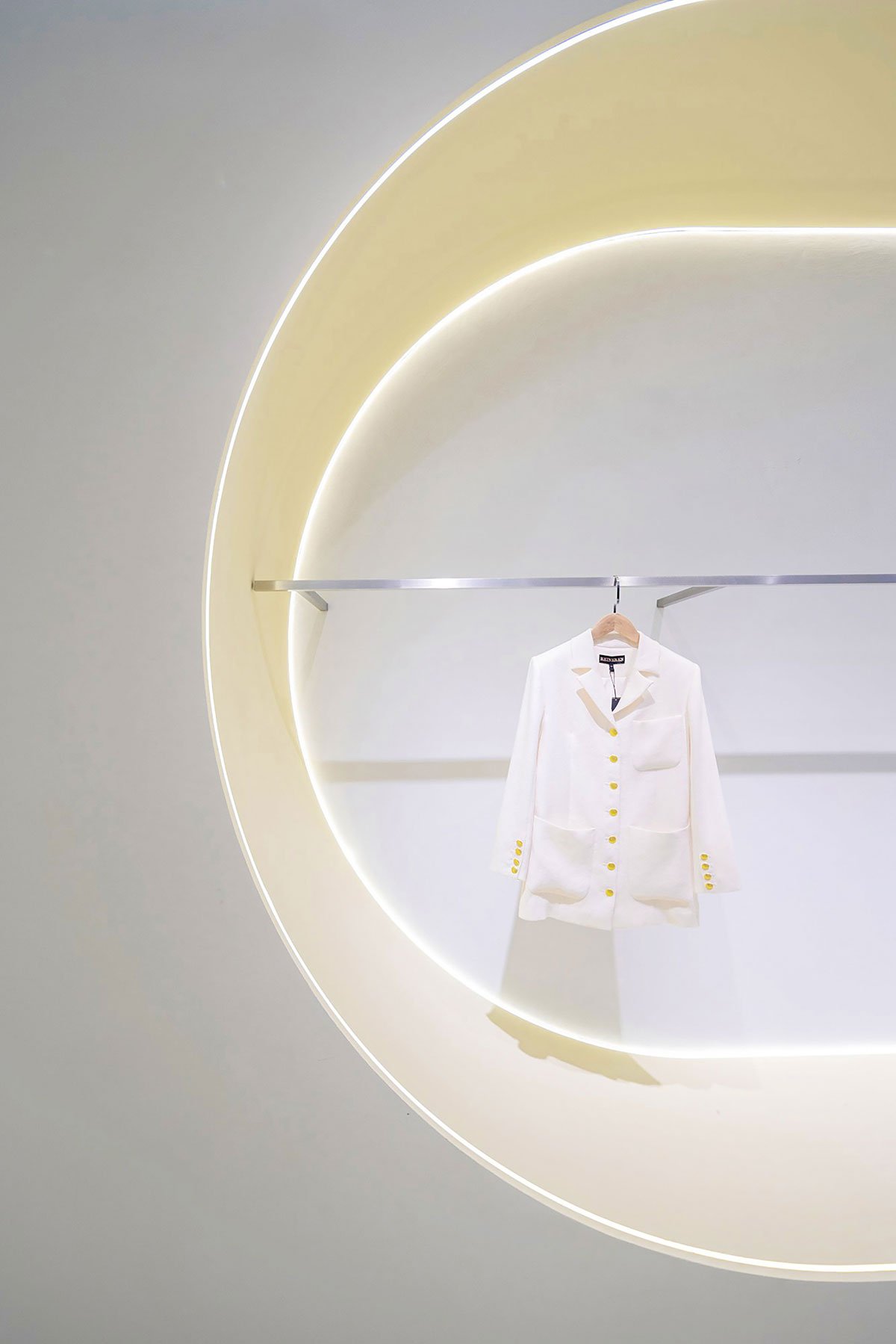 The design of the interior began through considering how to meet the needs of multiple scenes and functions in one cohesive space. The plan is divided into smaller, distinct zones; each one transformable into different scenarios. A customized, modular furniture and hanger system, works with the lighting to help to achieve this conversion into different scenarios: retail, events, fashion shows, and so on. A customized, modular furniture and hanger system allows infinite possibilities for creative product display in each zone. Meanwhile, in the back of the store, a more intimate bar area offers breathtaking views of the Bund and Shanghai’s iconic skyline. As one moves through ON/OFF, each element contributes to imbuing a continuous sense of surprise and discovery.